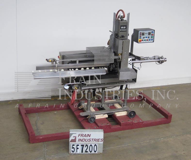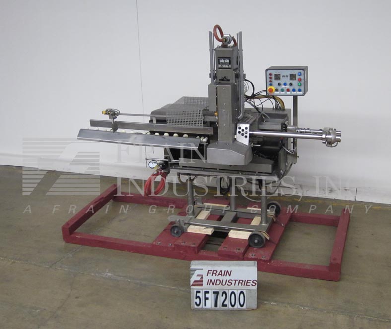 polyclip型号DFC8161,自动,双夹,chub填料,额定从10到50次每分钟-取决于材料和应用。能够从中型到大型产品的均匀分配,直径可达60mm。配备400夹子容量,双夹子杂志(放置两个夹子与每个周期)和利用8700系列夹子。40“长产品辊式输送机,可调节链接尺寸皮瓣,虹膜分离器和皮肤制动器,自动收回,防止皮肤过度拉伸,能够处理纤维,胶原蛋白,和合成型外壳,与A/B PLC。