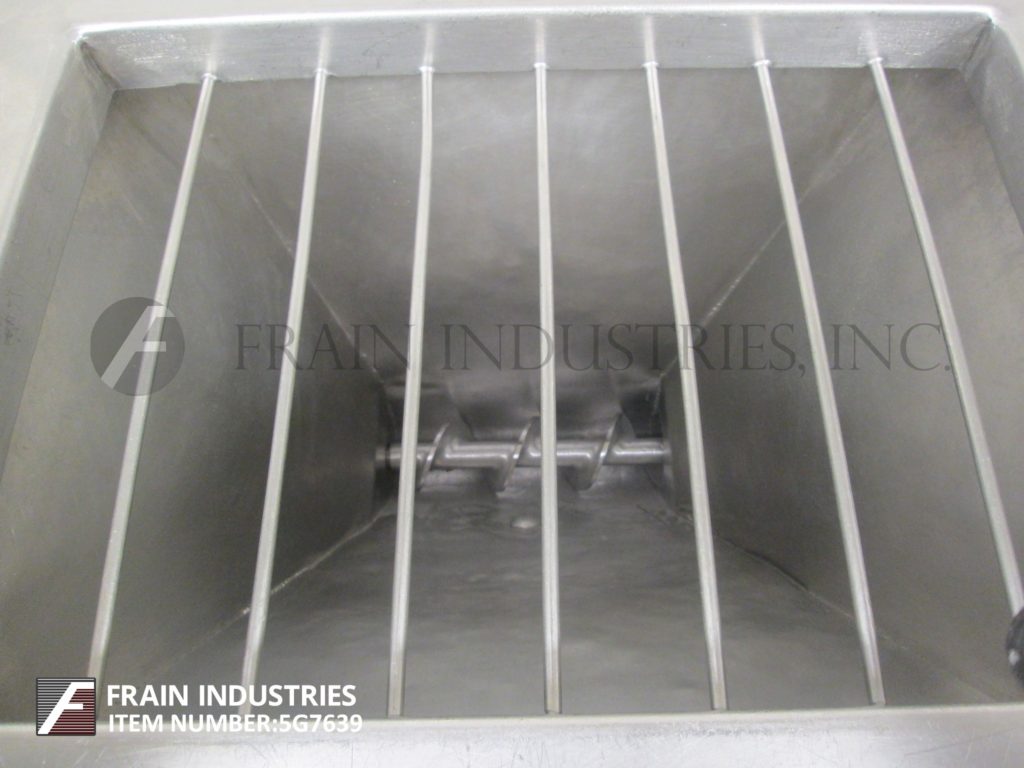 工艺系统,型号V-PD,不锈钢螺旋钻和泵送系统。每小时产品的产品 - 取决于材料,应用,环境和机器配置。配备有18" 长×12" 宽×18" 深(1立方英尺)的干燥产物料斗与安全网格和侧振动器,直径为3" ×13" 长螺钉用H马力的电动机驱动器,8" 直径×9" 深(2GAL。)混合料斗和(2)JABSCO阳性位移泵(1)2 HP和(1)3个HP驱动器供电。安装在不锈钢基础框架上。