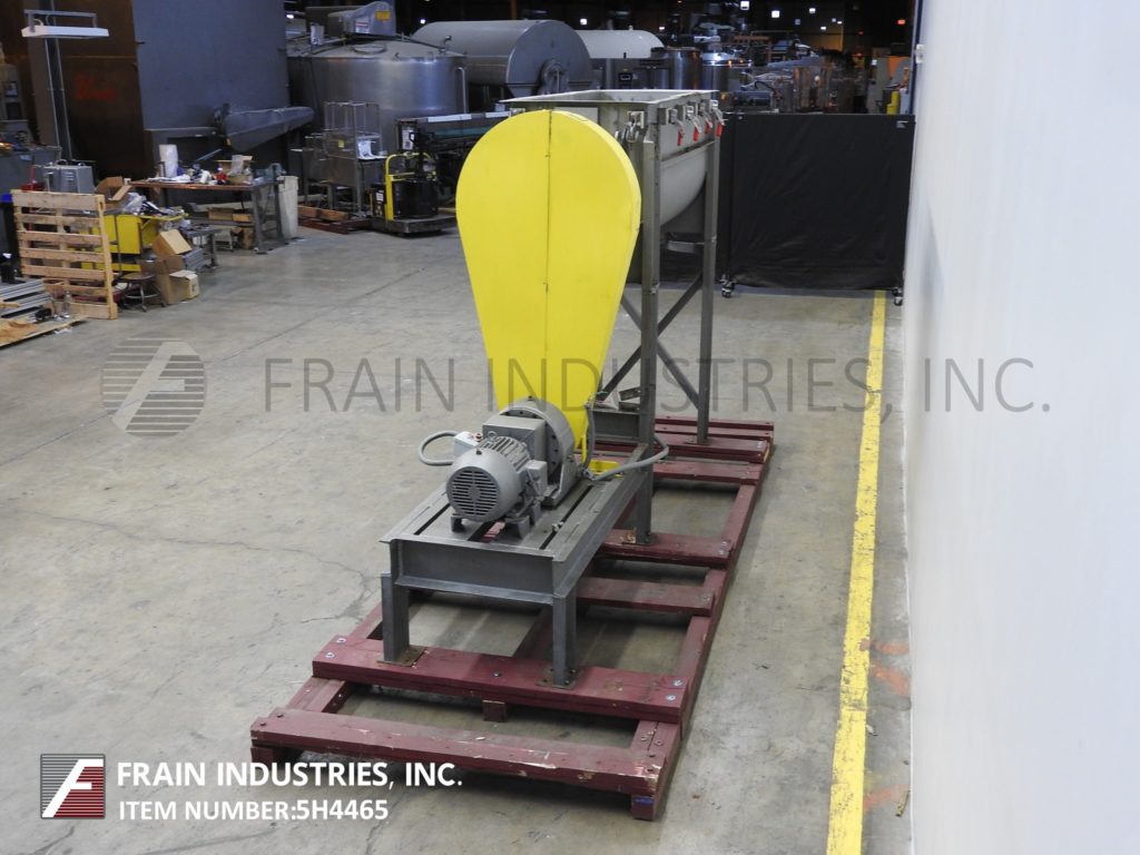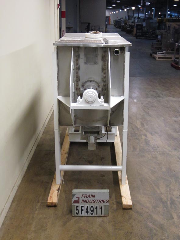 4 cuft。(30加仑),304 S/S色带搅拌机。内部尺寸:24"(L) x 18"(W) x 22"(D)。配有安全开关盖,2 3/8"直径轴,1"宽丝带,6" ID滑闸放电和变速。安装在施法者。