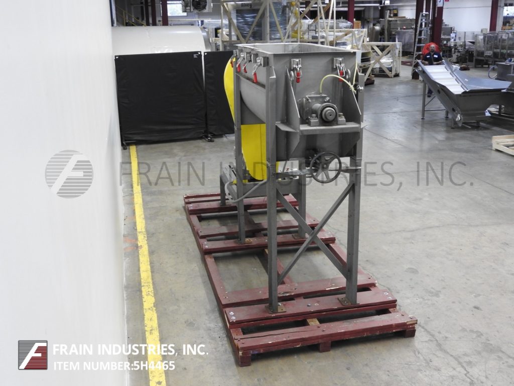 Aaron, 25立方英尺(23立方英尺的工作能力),304不锈钢双带搅拌机,每小时的产品磅数-取决于材料和应用。内部混合室尺寸:66英寸长度;26“宽;在深度30”。配备4”外径的混合轴,3 / 4”宽x¼”厚(外部)和2”宽x¼”厚(内部)不锈钢带。6英寸外径中心底部排放,带有手动滑阀和45英寸地板间隙。安装在(6)腿基础框架上。