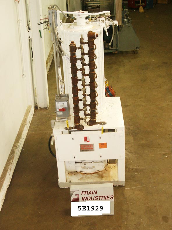 Aasted, 2000型,7盘,巧克力调温系统额定重量为2,000公斤或4,400磅/小时,最大额定压力为6棒——取决于材料和应用。配有28“OD x 22”H回火室(7)盘子,18“OD x 2 - 1/2“高水夹套板,刮面搅拌区和法兰螺栓盖(24)½“3”螺栓中心和顶级2“OD / 1½”ID Tri-clamp和底部2½“OD / 2”ID Tri-clamp产品港口和3/4”ID港口和模块化的紊流水系统,与过滤器快速传热和冷却通过表面回火元素。底部装有7.5马力电机驱动,安装在(4)脚轮底座上