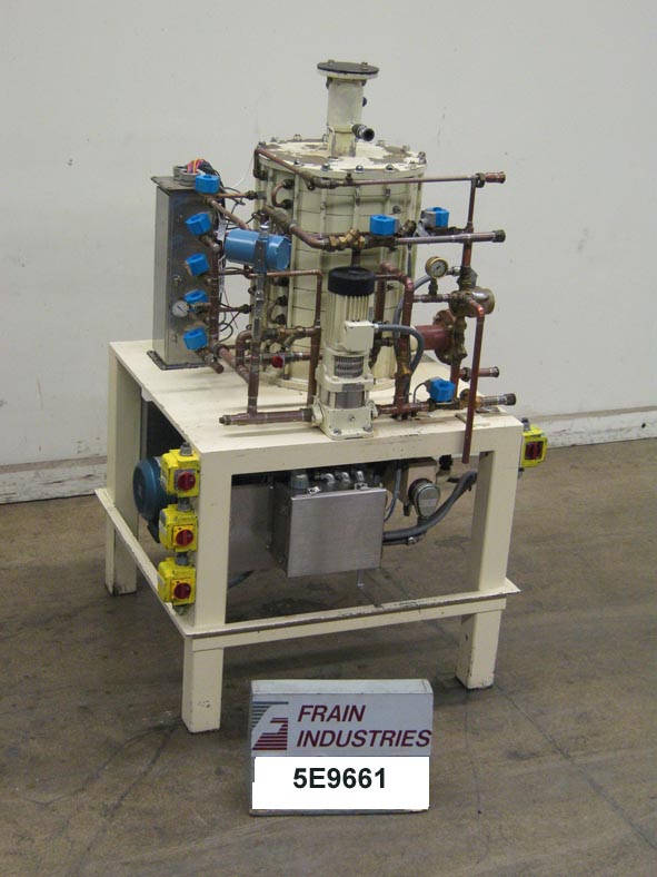 Aasted模型DWM3000,15板巧克力调温系统的额定功率高达每小时3000公斤或(6600磅)的压力等级:最高至6巴。配备有15板回火室(22" 外径×42" 高)与水夹套板和刮表面搅动。法兰盖,顶部和底部8" OD法兰产品入口/出口,模块化流水系统有过滤器,允许通过回火元件的表面面积的热传递。封闭式腔室系统具有六个温度区水泵和加热器,底部电机控制与平台式的基极驱动。