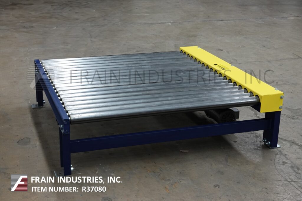 Alba Conveyors, 52" Wide x 60" Long, powered pallet roller conveyor powered by a ¾ Hp motor. Equipped with 2½" diameter rollers on 3¼" centers and 16" to 20" high infeed / discharge.
