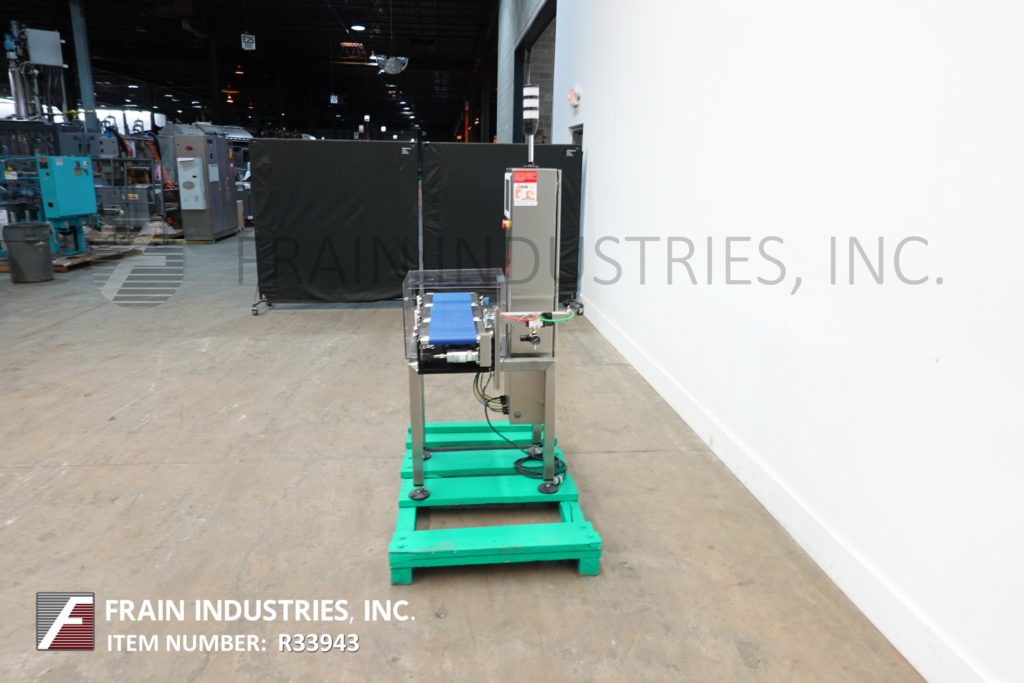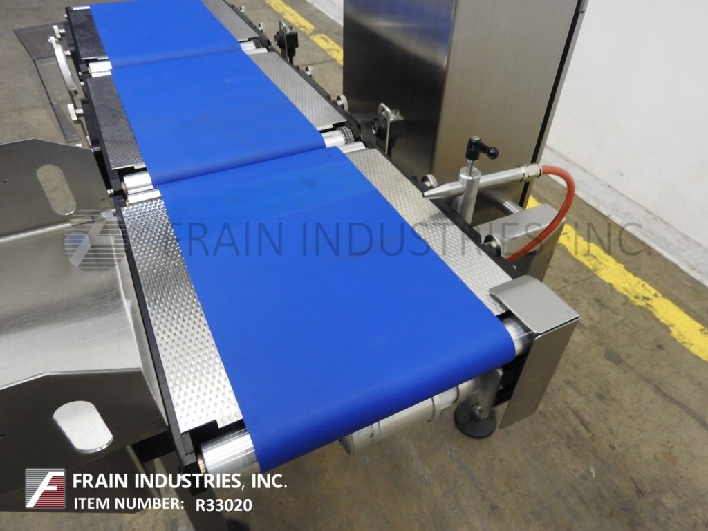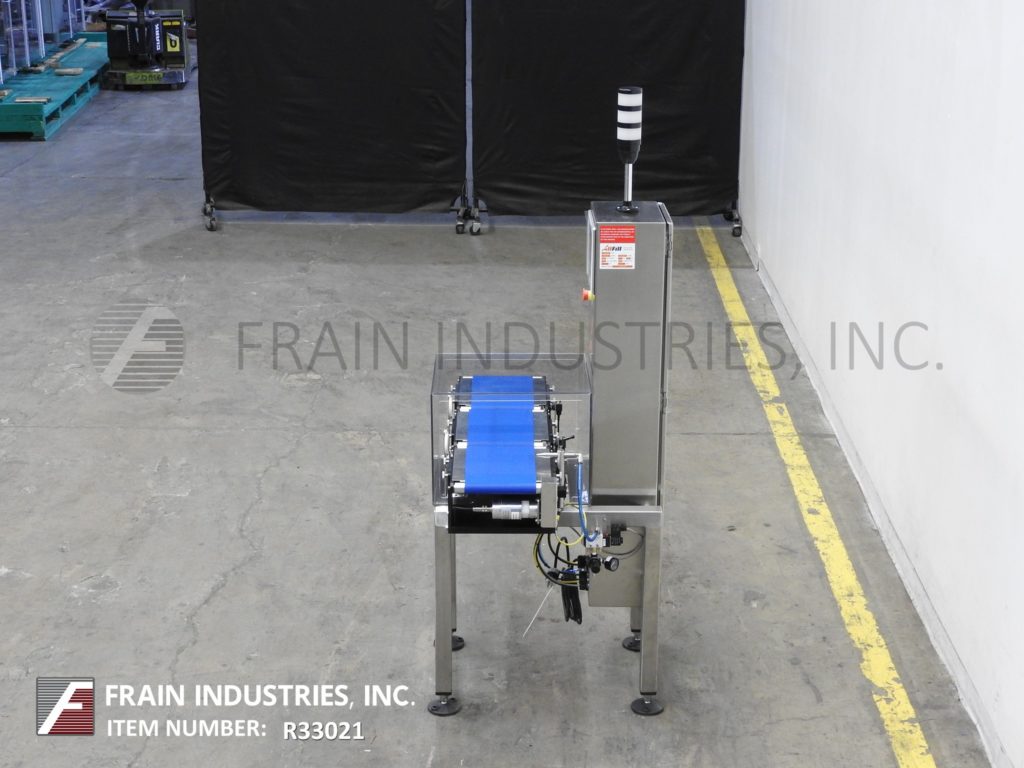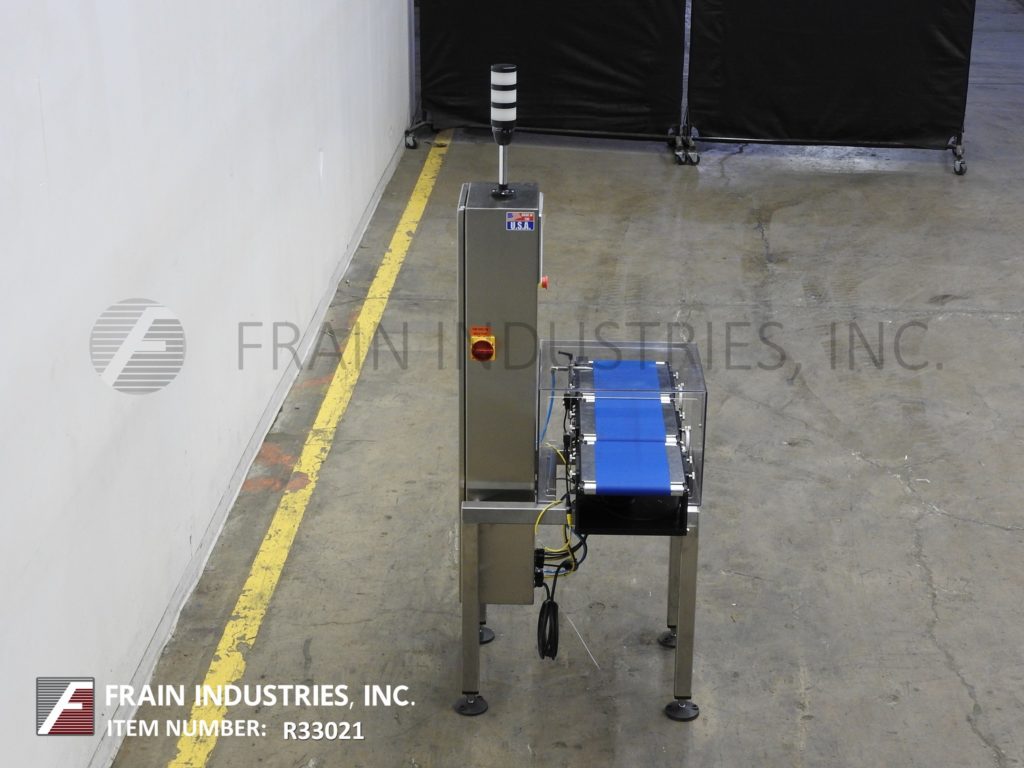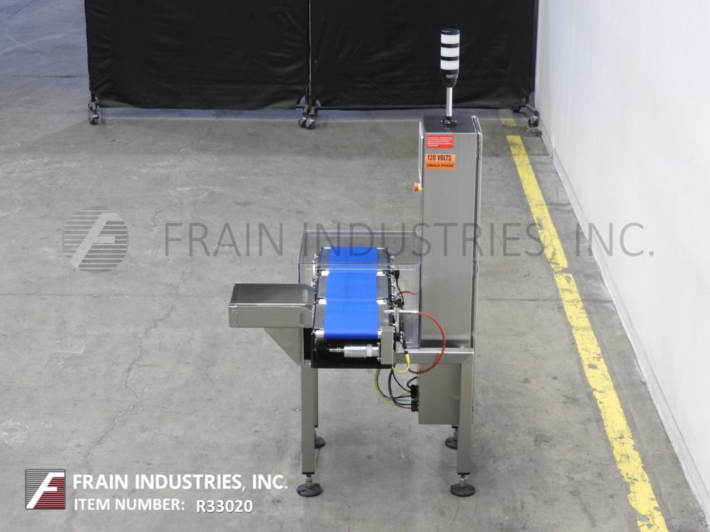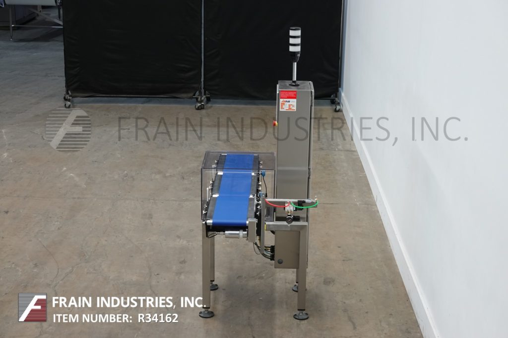所有填充,Alpha Model PW12,不锈钢,搭扣,每分钟包数 - 取决于材料和应用。数字应变计称重传感器,能够将宽度的封装宽度,宽度为12英寸,从5克到3628克(8磅),根据产品,精度为+/- .25克。配备12“长x 8”宽,进料输送机和12“长x 8”宽称重传感器输送机,其中Lexan覆盖在称重传感器上。控制面板带按钮操作员界面LED显示屏,直接反馈控制能力和标准25个具有空气拒绝的程序存储。安装在不锈钢框架上,高度可调腿。