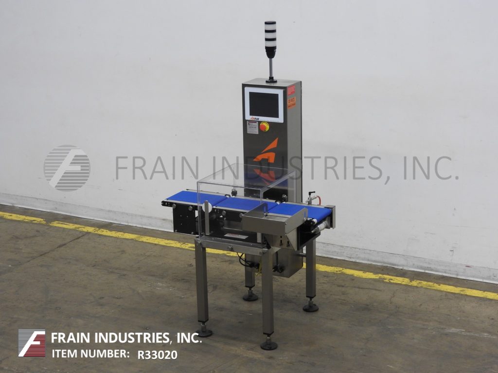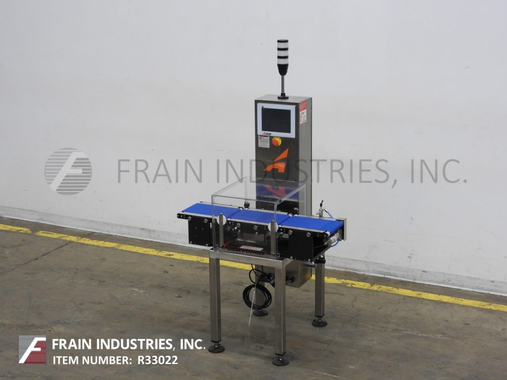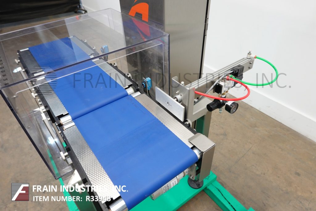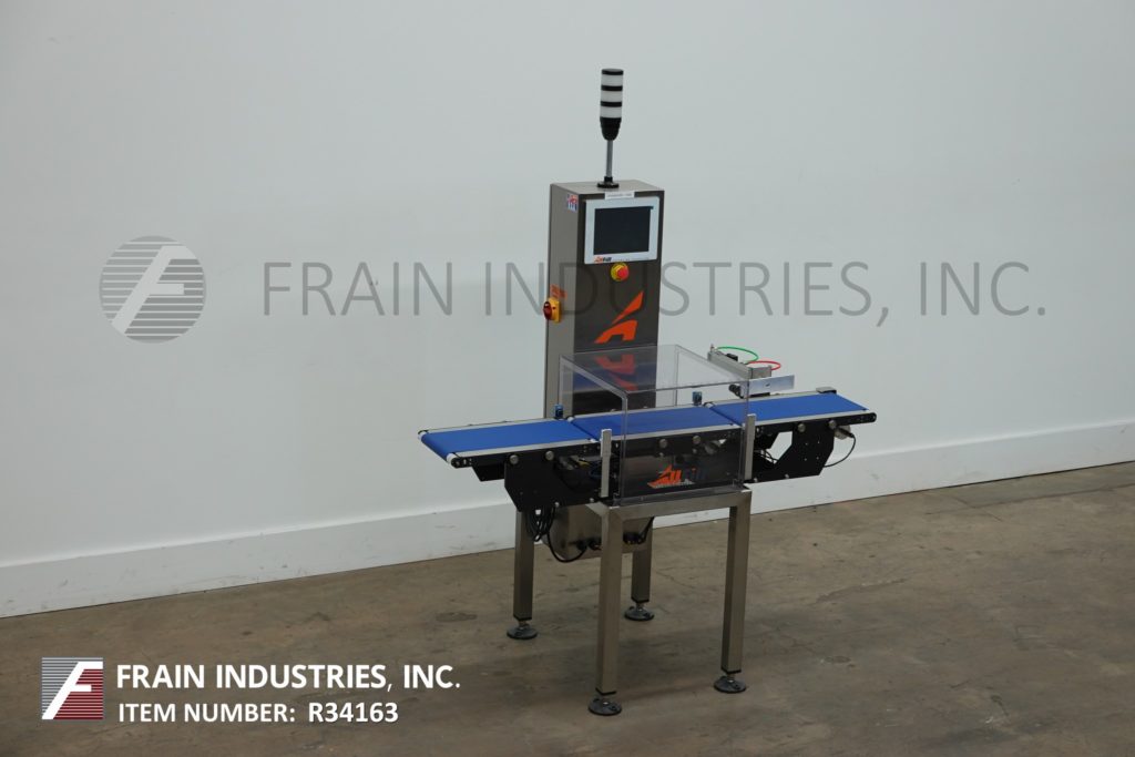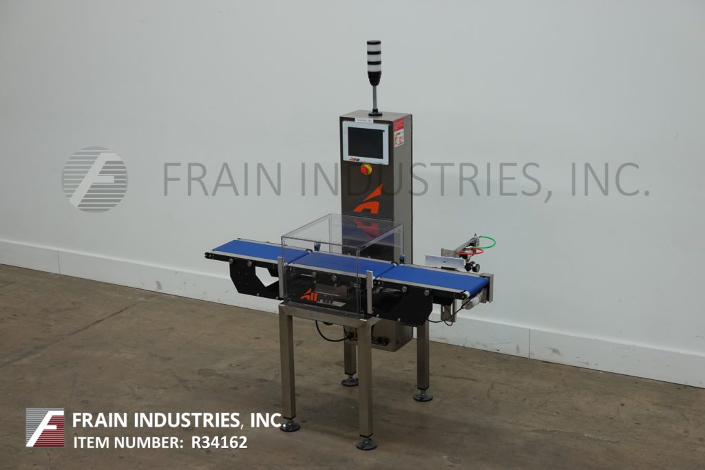 所有填充,Alpha Model PW12,不锈钢,搭扣,每分钟包数 - 取决于材料和应用。数字应变仪负载电池,能够将宽度12“长度为12”; 8英寸,从5克到3628克(8 LBS),根据产品,精度为+/- 1克。配备12“长x 8”宽,进料输送机和12“长x 8”宽称重传感器输送机,其中Lexan覆盖在称重传感器上。控制面板带按钮操作员界面LED显示屏,直接反馈控制能力和标准25个具有空气拒绝的程序存储。安装在不锈钢框架上,高度可调腿。