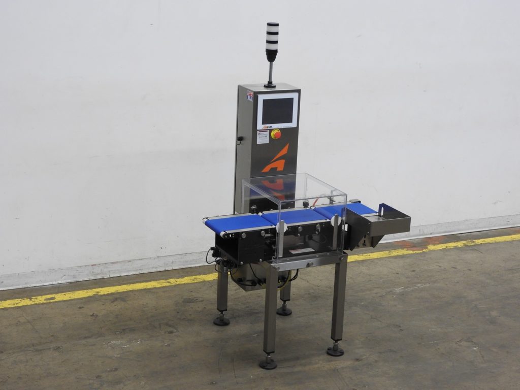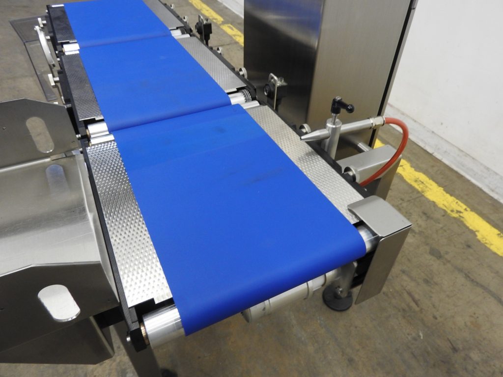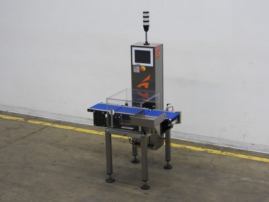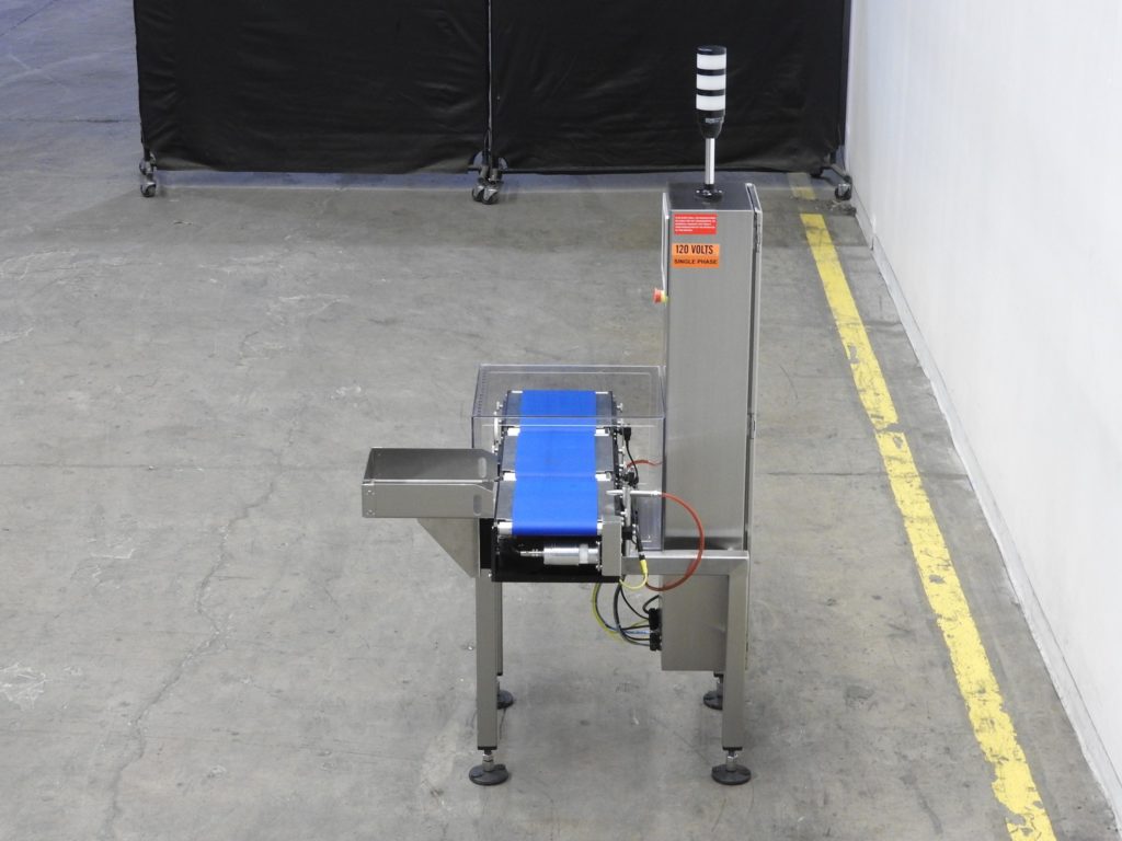 所有填充,Alpha Model PW12,不锈钢,搭扣,每分钟包数 - 取决于材料和应用。数字应变仪负载电池,能够处理长达12英寸的封装;宽度为12英寸,5克为3628克(8磅),根据产品,精度为+ / - .25克。配备12“长x 8”宽,进料输送机和12“长x 8”宽称重传感器输送机,其中Lexan覆盖在称重传感器上。控制面板带按钮操作员界面LED显示屏,直接反馈控制能力和标准25个具有空气拒绝的程序存储。安装在不锈钢框架上,高度可调腿。