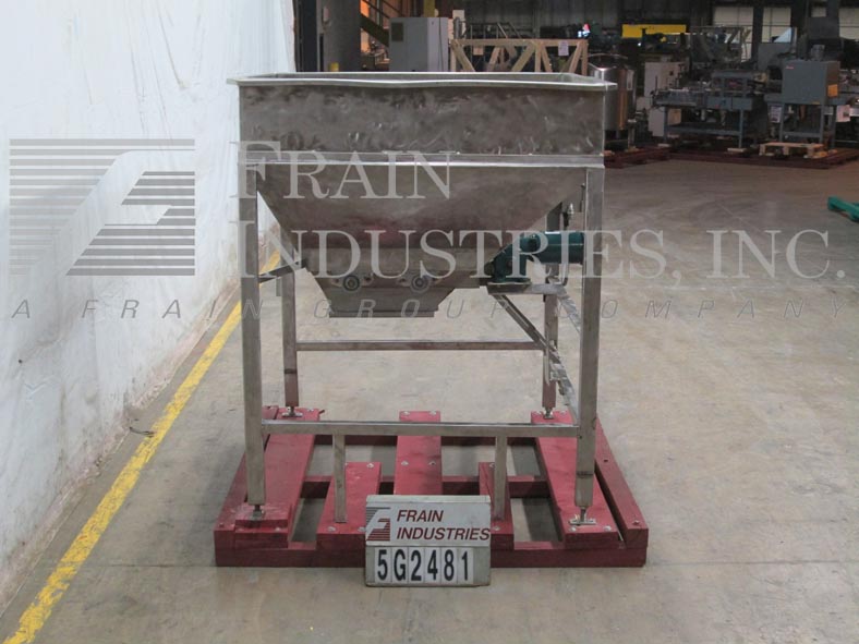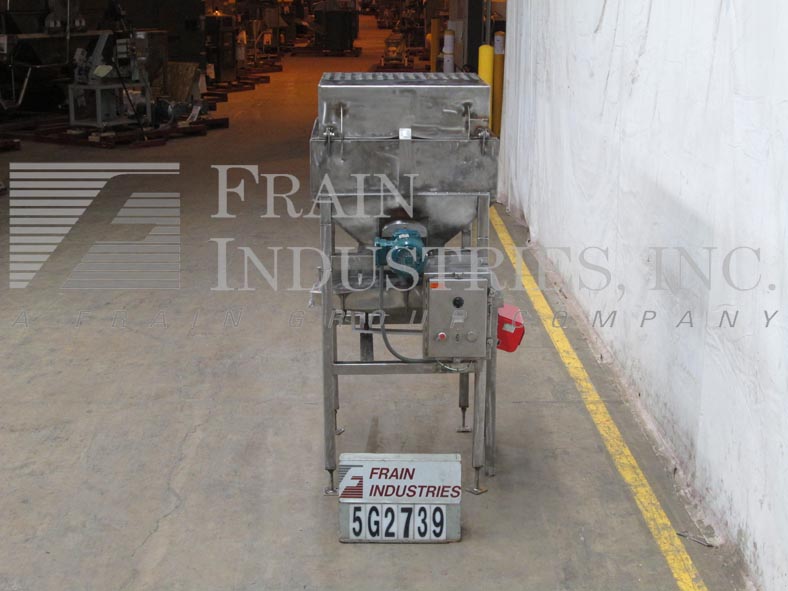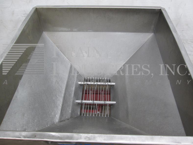 684型星团终结者。全不锈钢配备开顶料斗,60" x 60" x 14"高直壁x 28"深v形底。19" x 16"格栅底部放电与32"地间隙。1-1/2"直径双轴5"长x 2-1/2"宽叶片供电2hp齿轮马达。A-B 30A断开开关。
