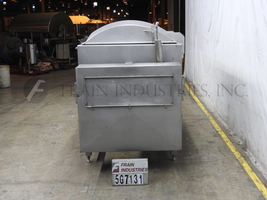 AMFEC, 510型,304不锈钢双槽真空桨式搅拌机。每小时产品的重量-取决于材料和应用。容量:126立方英尺(80立方英尺工作)。槽尺寸:96英寸长;57”宽;在深度43”。配备气动升降顶部盖,(2)套14“宽× 7”高×½“厚桨,3½“直径电机轴和4”直径搅拌轴。(2) 25" x 9"气动端闸阀排放35"地间隙。由(2)台15马力电机驱动。