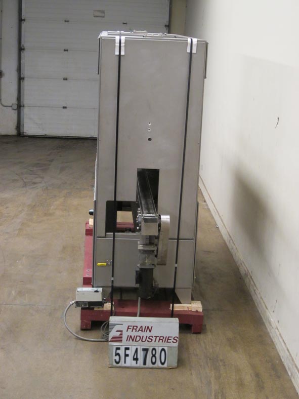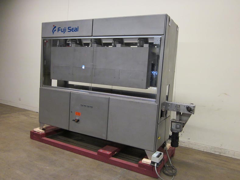 美国富士密封,型号Intersleeve 3100DE,自动,直接收缩套筒涂抹器和蒸汽收缩隧道从50到400个容器每分钟 - 取决于材料和应用。集装箱尺寸范围:直径1.4“至6,4”;高度1.6“至14英寸”,具有适当的变化部件。配备220“长x 3-14”宽不锈钢delron产品输送机,伺服驱动胶卷,胶卷,瓶子的传感器,端膜探测器和套筒头用手工曲柄,套筒头高度调节和19“直径标签卷卷轴。