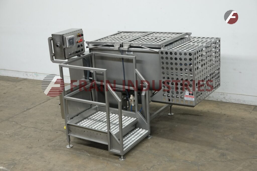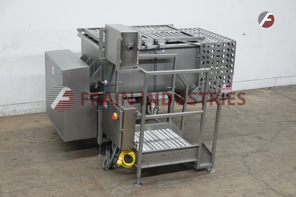 Amfec, Model 510, 30 ft³ (20 ft³ working capacity), 304 stainless steel dual trough paddle mixer with pounds of product per hour – depending on materials and application. Equipped with 2 mixing troughs with inner dimensions of: 54" in Length; 36" in Width; 30" in Depth; with 9" wide x ¼" thick stainless steel paddles on 2½" OD shaft, (2) ½ Hp motor drives and dual pneumatic discharge gates with safety garding and 28" ground clearance. Control panel has push button start / stop, forward / reverse controls. Mounted on (4) stainless steel legs.