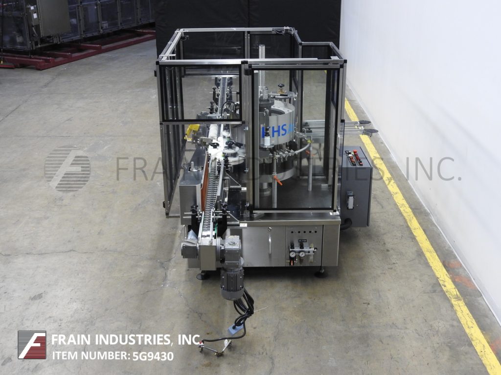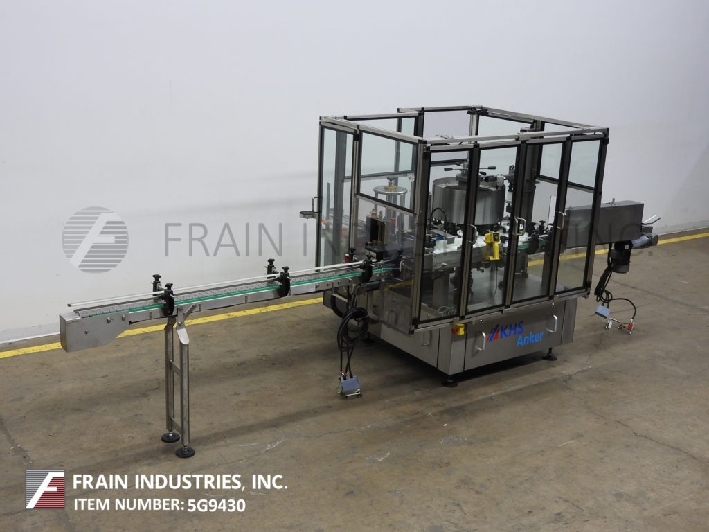 Anker, Roland 8/4型,全自动8头缠绕,点胶或颈部冷胶,用于预切标签。额定从35瓶到150瓶每分钟-取决于材料,应用和机器配置。能够做平面,椭圆形,圆形和矩形容器-有适当的更换部分。标签宽度:1“到5½”。标签高度:(3/5)“到12½”。容器尺寸范围:1(3/5)"到4(7/10)"直径;身高1(3/5)"至14"配备一个3¼“宽x 190”长的不锈钢输送机,进给螺旋,进给/出给,一个8位的传送带,4位的抓斗鼓,(1)贴标站19½“L杂志和21”长x 8”高包装皮带卸料。控制面板采用西门子控制器,按按钮启动/停止/复位,变速控制拨号,联锁屏障保护和E-Stop。安装在不锈钢框架上。