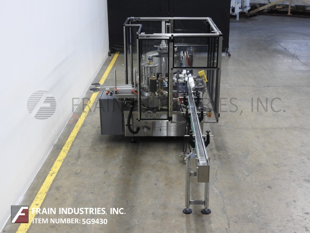 Anker型号变种l,自动内联不锈钢,冷胶,环绕标签。额定每分钟20到120个容器-取决于材料和应用。容器尺寸:直径40mm至120mm,高度40mm至360mm。标签长度为80mm ~ 325mm,高度为40mm ~ 200mm。配备90"长x 3¼"宽集装箱输送机蜗杆集装箱分度,10"长预切标签杂志正面标签剥离,8"高x 30"长缠绕皮带,没有集装箱/没有标签,E-stops,和安全防护。安装在重型基础框架。