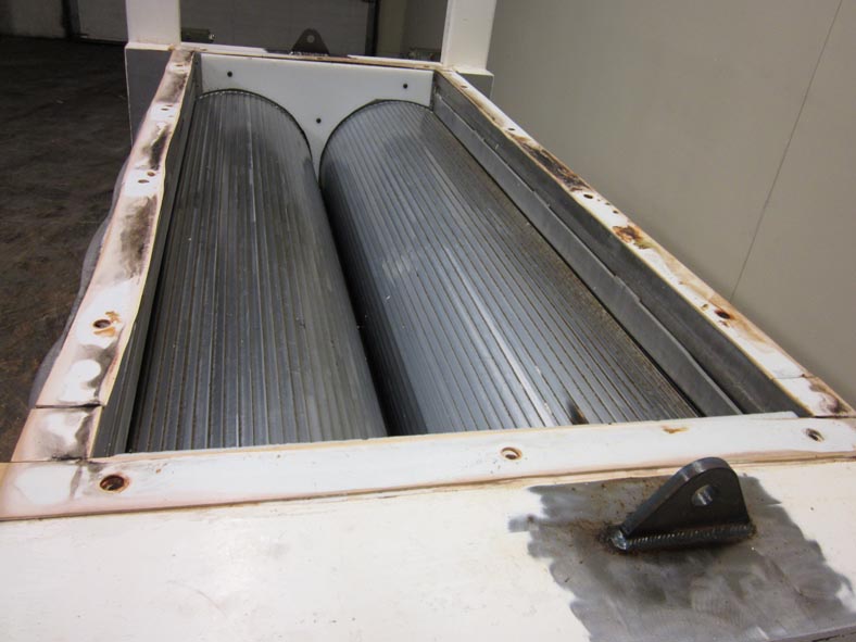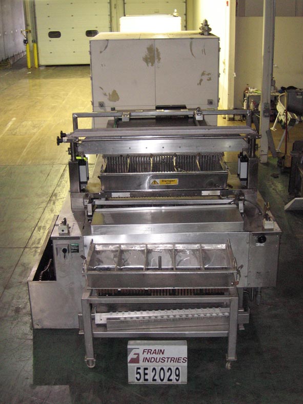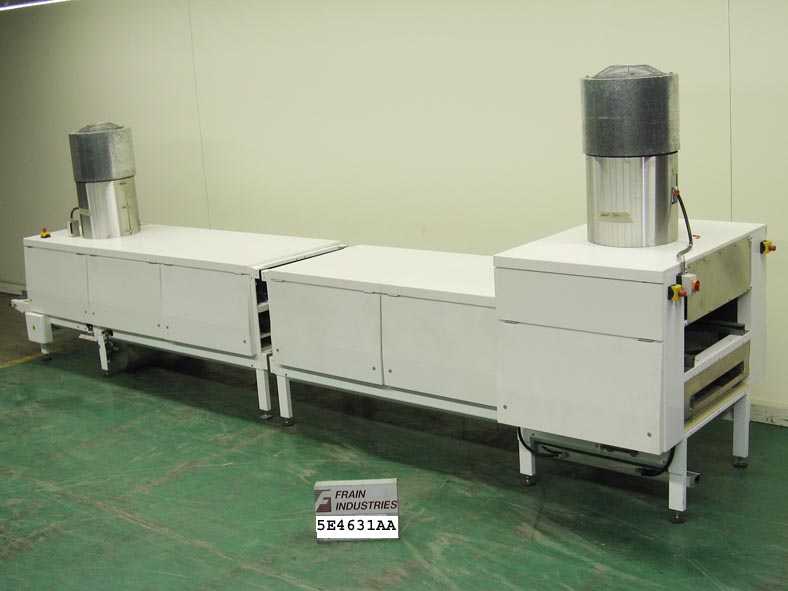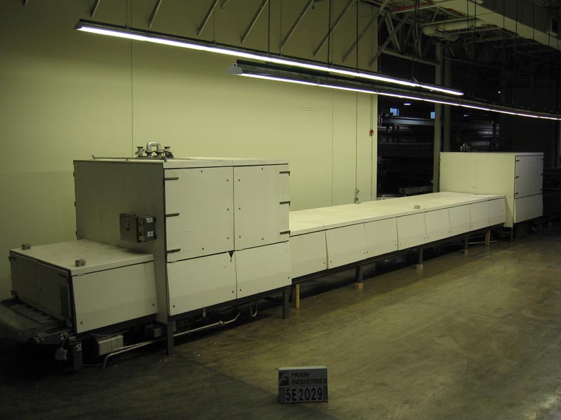 沉淀线包括APV Baker模型250分体式料斗,双排沉淀机与双分体式产品料斗(20)不锈钢活塞每边共40个每料斗10到65冲程/分钟,每冲程40个。APV Baker环境冷却隧道测量20 '长x 48"宽,带有A/B PLC控制面板。