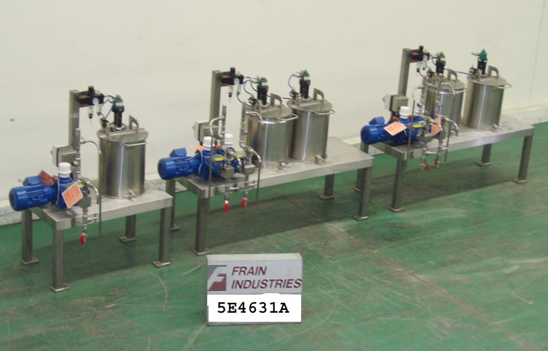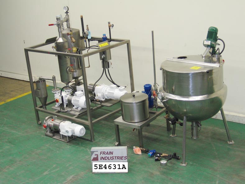 APV Baker型号250/C8,硬糖厨房和沉积生产线额定每小时50到405公斤的产品,每分钟产量500到2600块-取决于尺寸,材料和应用。厨房由300升不锈钢搅拌罐快速溶解器和450升3叶片支柱式搅拌不锈钢釜组成。APV贝克缩微膜和涡轮膜烹饪系统,带有(2)区域板和框式热交换器,波瓣转移泵,真空系统和控制面板。麸皮Luebbe颜色/调味添加剂混合,计量和饲喂系统。