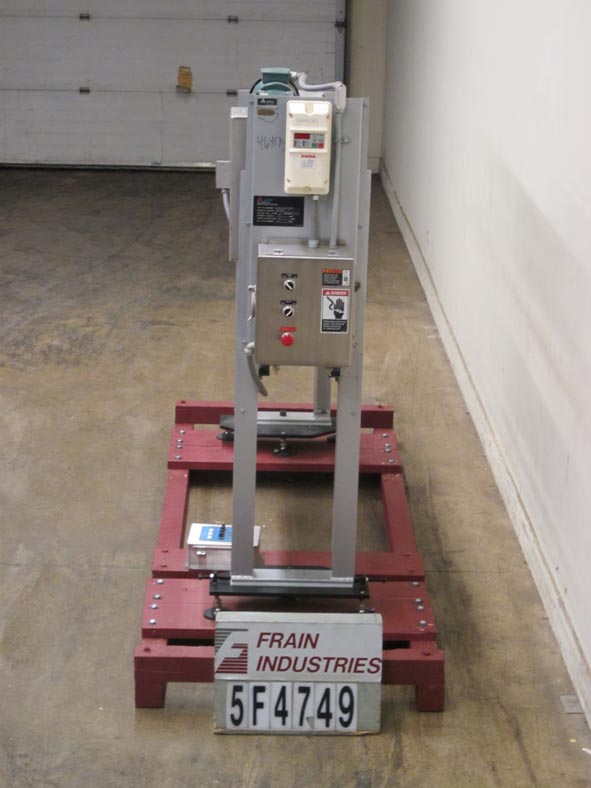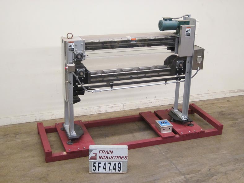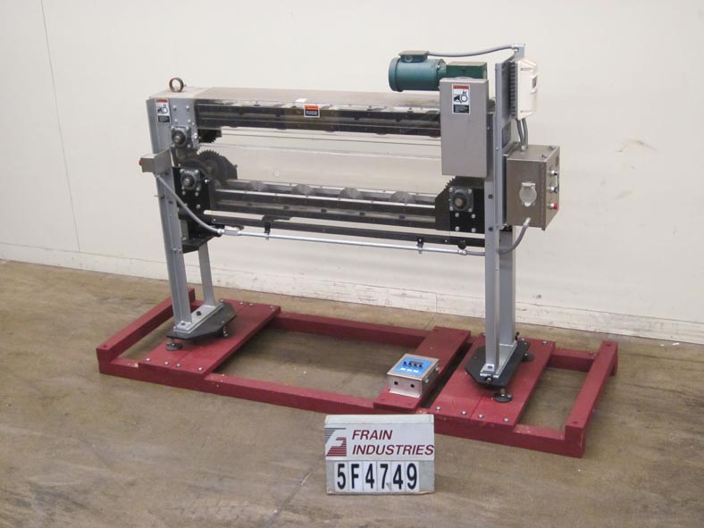 APV贝克1506-48型飞切刀,与输送机或烘箱设备配合使用,对通过的产品进行横切。配备(15)6“切割刀片直径可调角度削减”12日中心配备可拆卸刀片拾荒者和安装在64年中期“长x 6”宽双旋转链和锚机持链轮装配1惠普变速控制器和终端安装驱动和依赖成份公司刷系统(需要刷组装)。控制面板有刷连续/间歇或断开,前进/后退控制开关有e-stop。