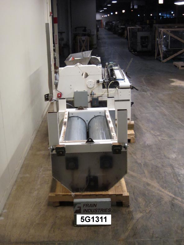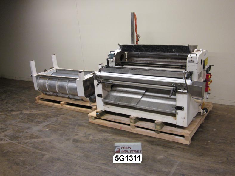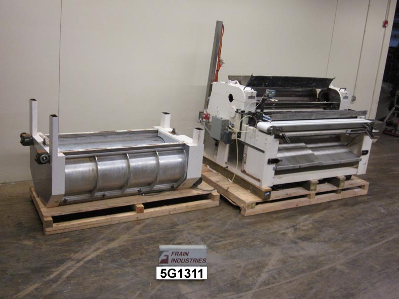 APV Baker型号010372(3)滚动旋转模具,带有钢丝截止和送料器,产品速率 - 取决于材料和应用。配有面团前送料器,配有(2)70“L X 20”直径沟槽滚子和带顶部进给料斗的旋转模具,(1)72“长×10”直径沟槽进料辊,(1)72“长×10”直径光滑滚子,用于进料带(不包括),带有钢丝截止和100“L X 9-1 / 2”W NeoPreme Scrap Removal输送机。特点:对饲料卷,模具辊和刮除扫描控制的控制器,通过e-stop。