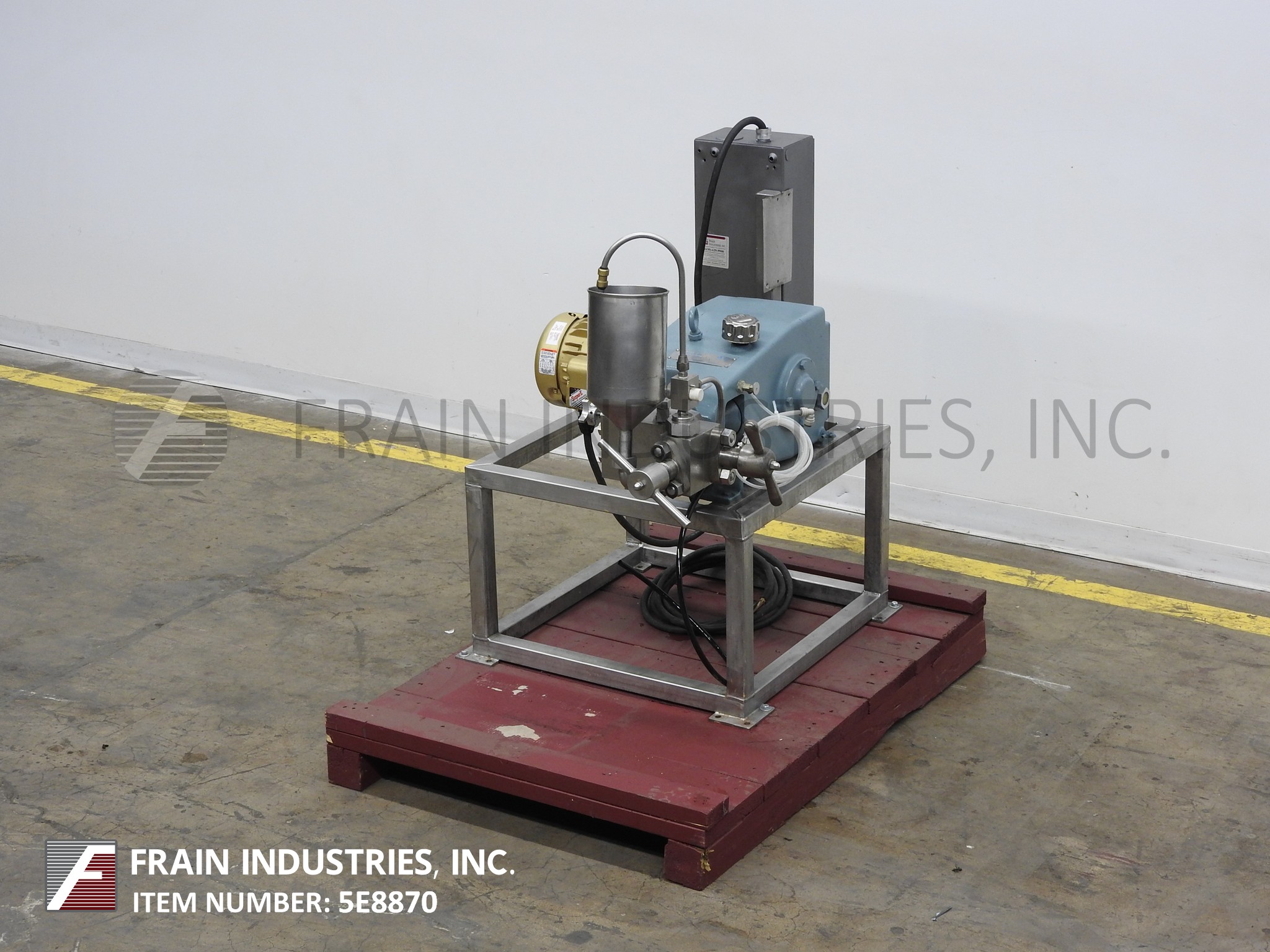 2级、S/S、实验室规模的均质器,根据应用情况,额定速度高达15 gph。所有316 S/S接触件能够在8000 psi(10000 psi)下连续工作。最多20分钟),最小容量为1磅。具有S/S产品料斗,外径为1 1/4”的螺纹联轴器,外径为2”和1 1/2”的螺纹进口/出口,压力表,3 hp电机驱动,带有A/B启动/停止按钮控制,并安装在带有脚轮的S/S平台式基架上。