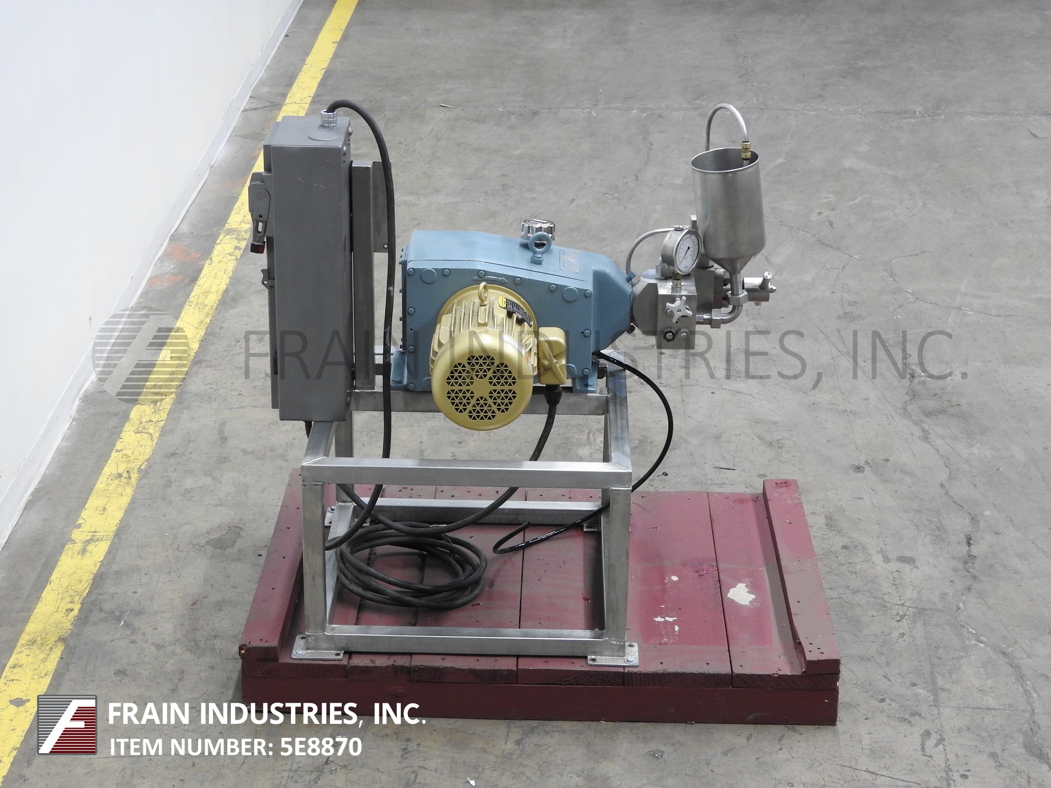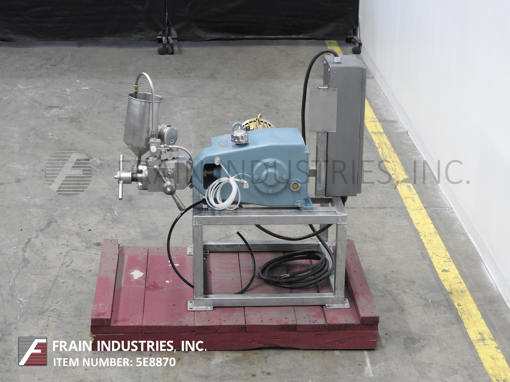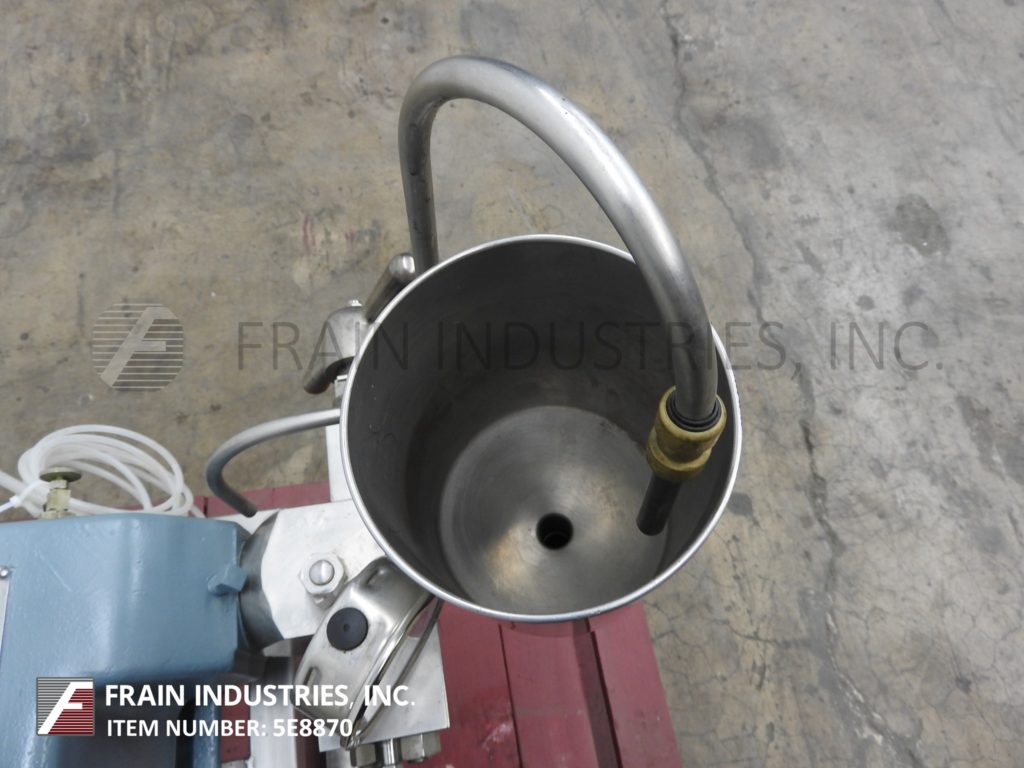 APV,实验室1000型,两级,均质机。额定输出容量为每小时6加仑-取决于材料、应用和机器配置。最大工作压力高达12000 psi。配备提升阀气缸和CD阀座,手动均化阀致动器组件,带有5“直径x 9”深料斗进料、¼”内径排放和数字压力表。