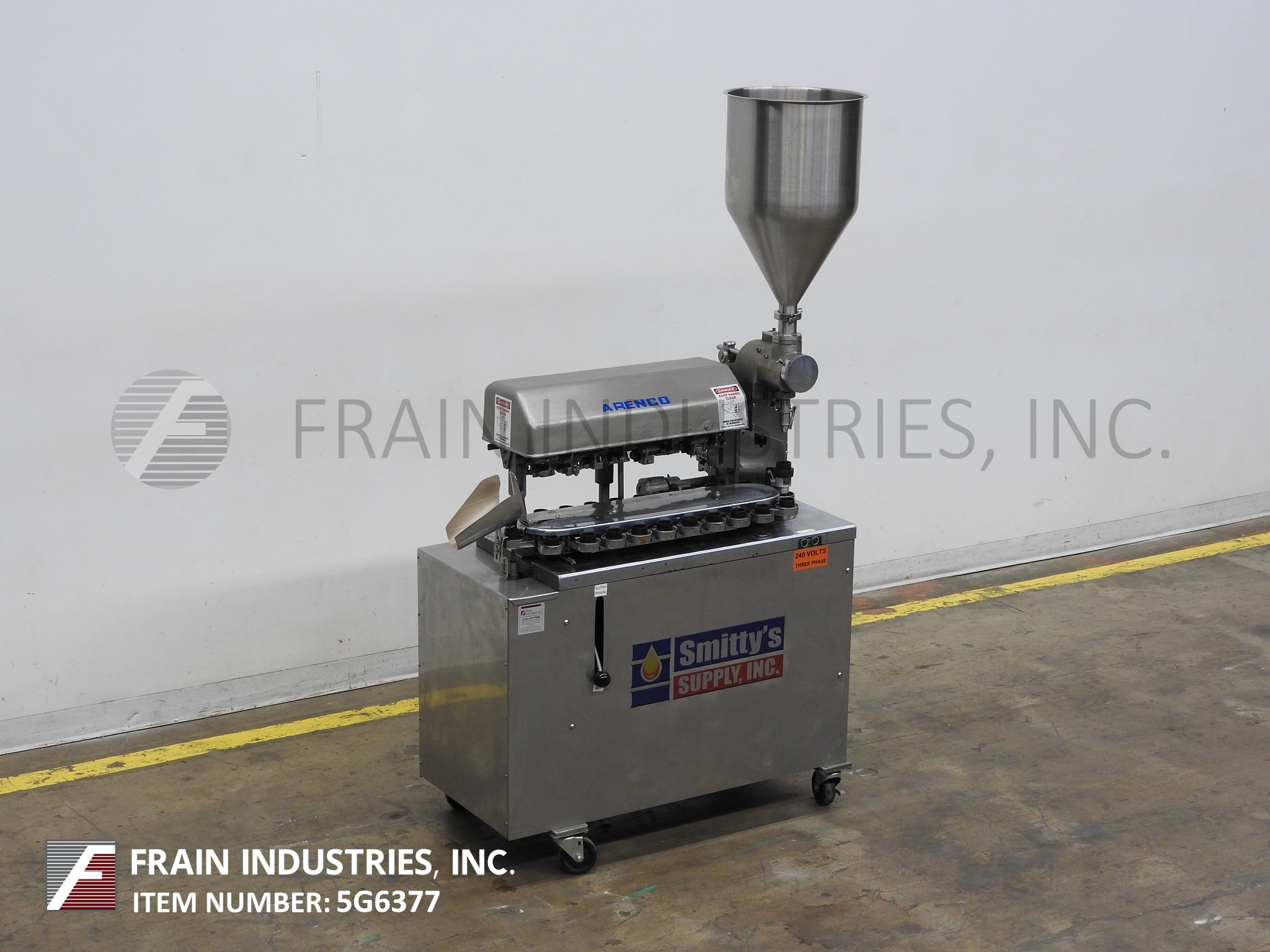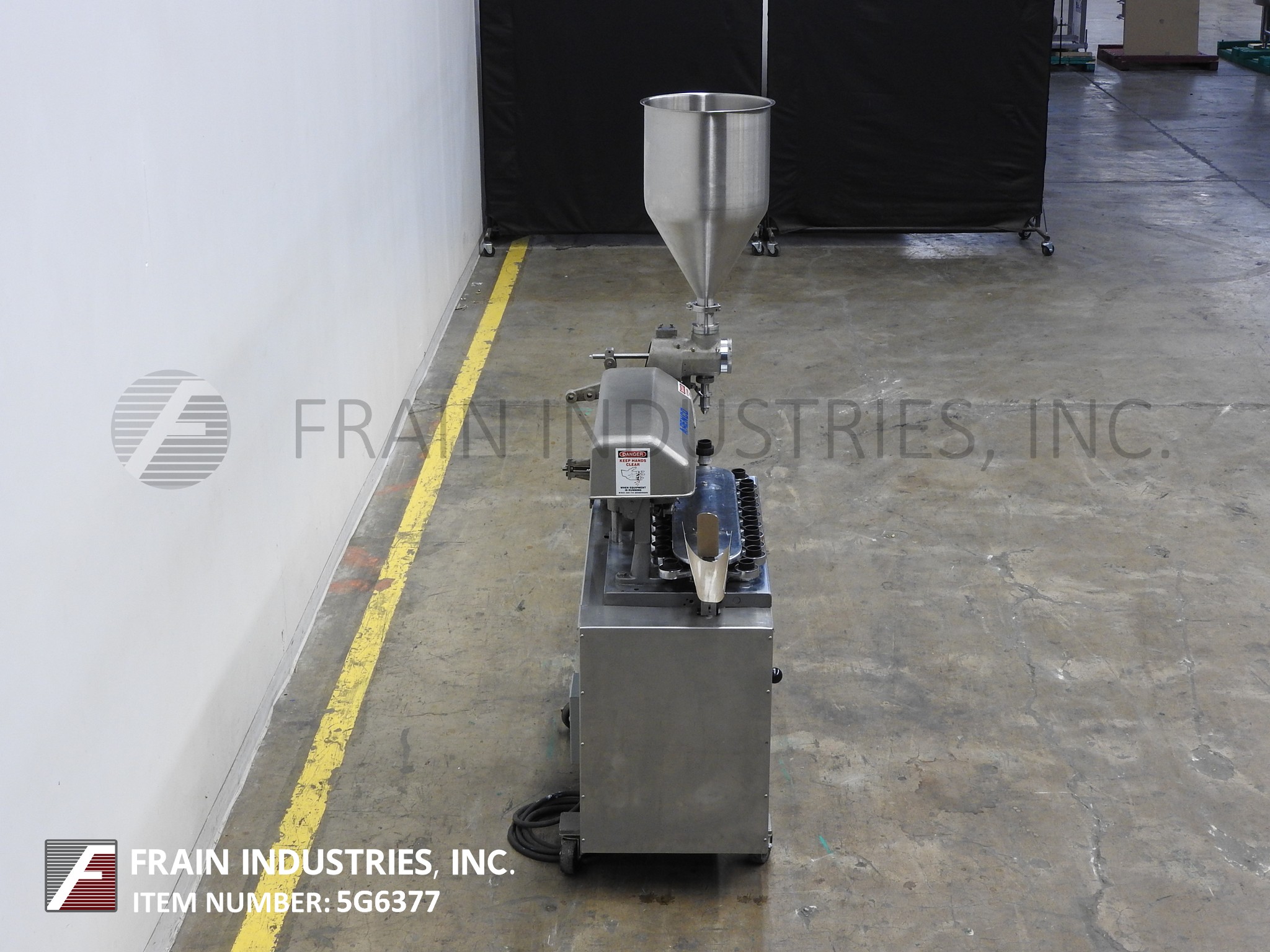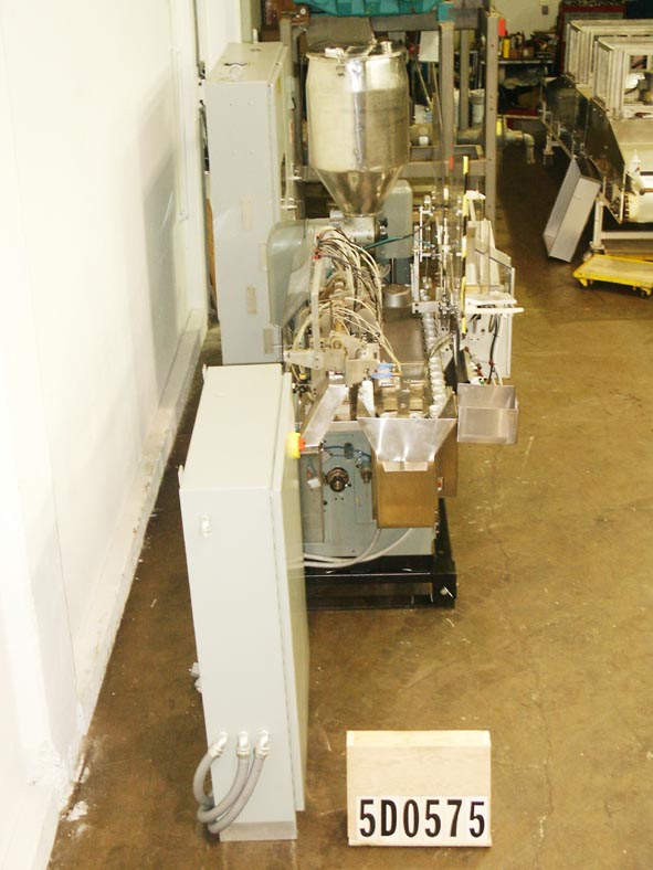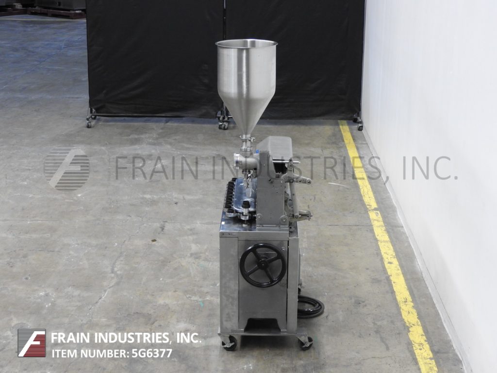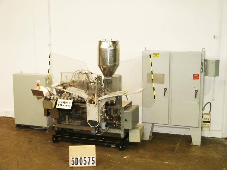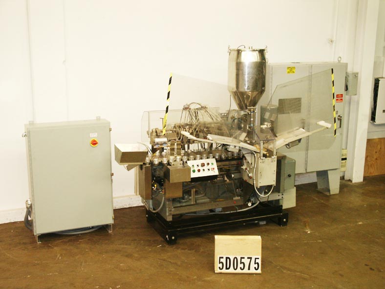 阿仑科GAN型,自动填充和密封管。每分钟的容器数量-取决于材料和应用。管尺寸:直径可达1-1/2";高达7-1/4英寸的高度。配备空管杂志,不锈钢产品料斗,40口袋炮塔,管清洗站,注册,4-1/2"长由3/8 ID活塞1/4"外径喷嘴,底部向上填充,热密封,冷却颚组件与冷水机和修剪站。控制面板启动,停止和e-stop控制。安装在基础框架与脚轮