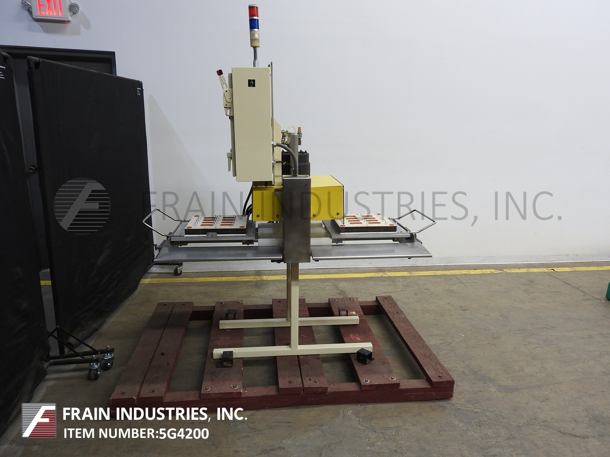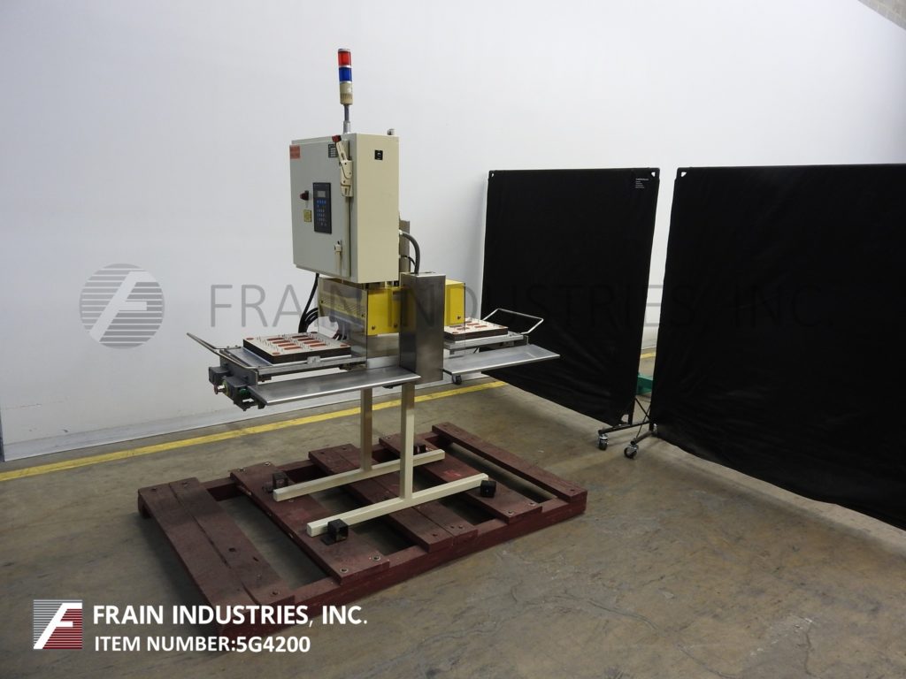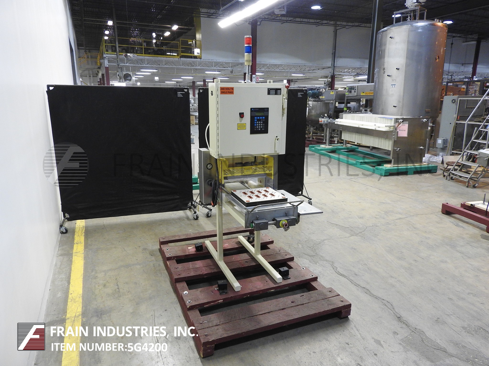 阿特拉斯VAC,型号15 x 18,半自动,双梭,泡罩托盘封口机。配有双梭,配有15 x 18密封区域,可调节密封压力为0至5000磅。控制面板具有A / B PLC,带有触摸板控制器,带有加热器的读数和启动/电子停止按钮控制,并安装在H样式底架上,带有安全保护和Statis灯条。速度取决于材料,应用,机器配置和操作员灵活性。