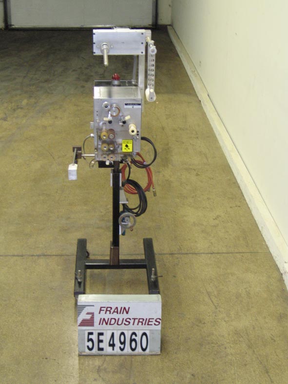奥斯汀戈登模型PD-202,自动,干燥剂或袋喂料额定高达245干燥剂每分钟-取决于材料,应用和袋的大小。设计用于分配尺寸范围为:3/4"到3/ 2"长x 3/4"到3"宽x 1/32"到5/16"厚的预制袋。12"外径产品卷带1-1/2" ID芯,贴膜,无容器/无袋,剪刀切断,手动曲柄高度可调柱。控制面板有开/关控制,变速拨号和统计灯。安装在h型框架与锁定脚轮,并使滚动在现有的输送机。