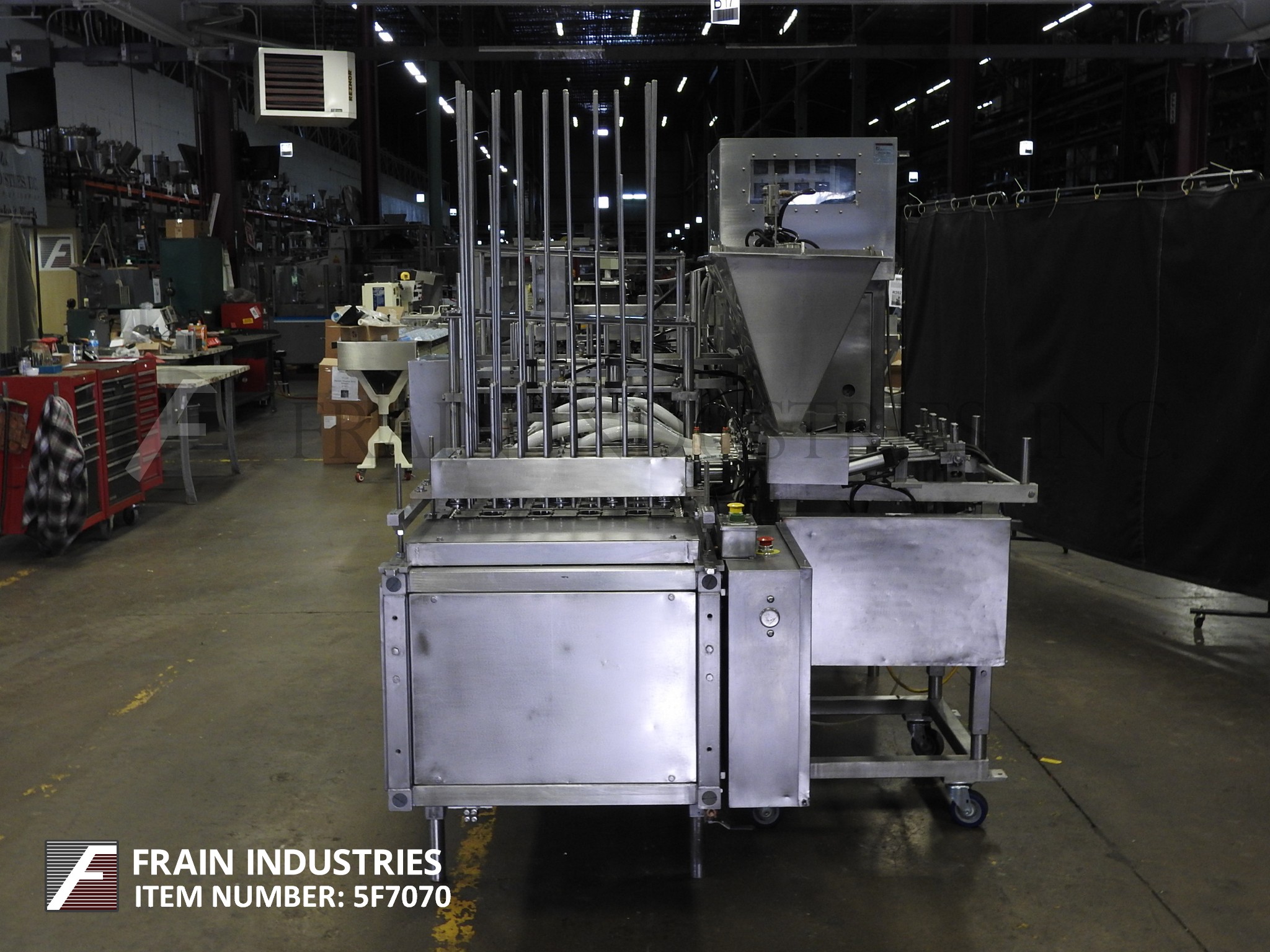 Autoprod Model 2 x 6,自动,内联,不锈钢,杯填料/封口机从120至360杯/分钟额定 - 速度取决于材料和应用。填充范围:0.5一次至1.04夸脱。单位拒绝,填充和热密封芯片将箔片密封件粘在杯子上。配备双车道杯尼斯特,12头活塞填料,积极切断灌装喷嘴,带有凹陷和纵向产品料斗,以保持产品热或凉爽。双车道往复式预切割,箔盖PIC-N - 具有快速变化的杂志,用于连续运行,双车道热封站,从杯子携带口袋排出。最后灌装产品在180至190度Farenheit进入4oz杯中。