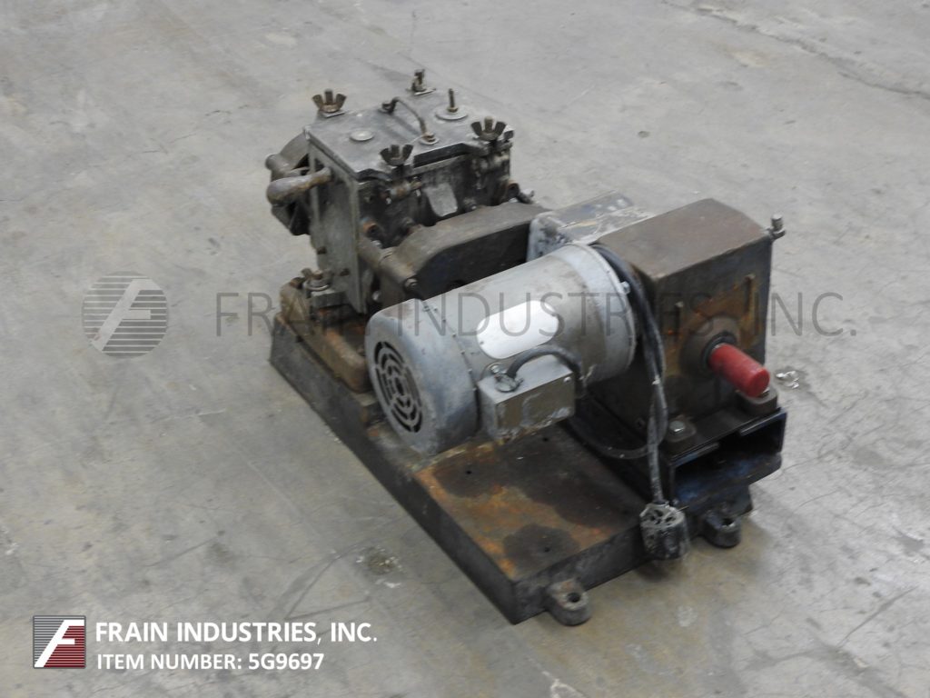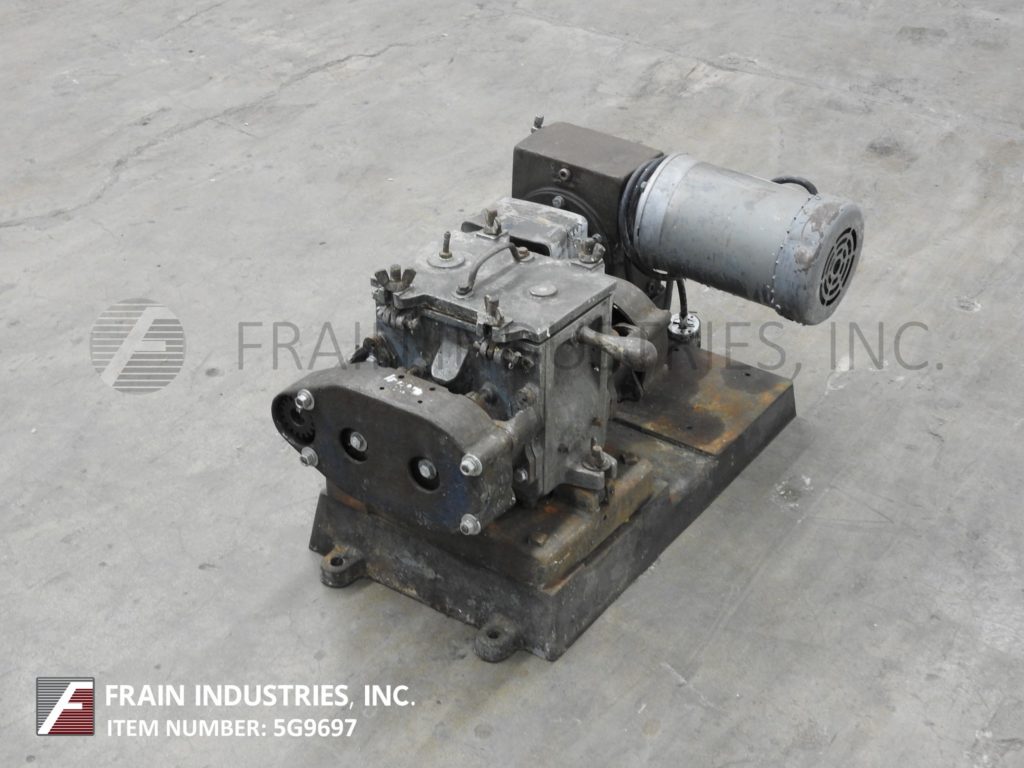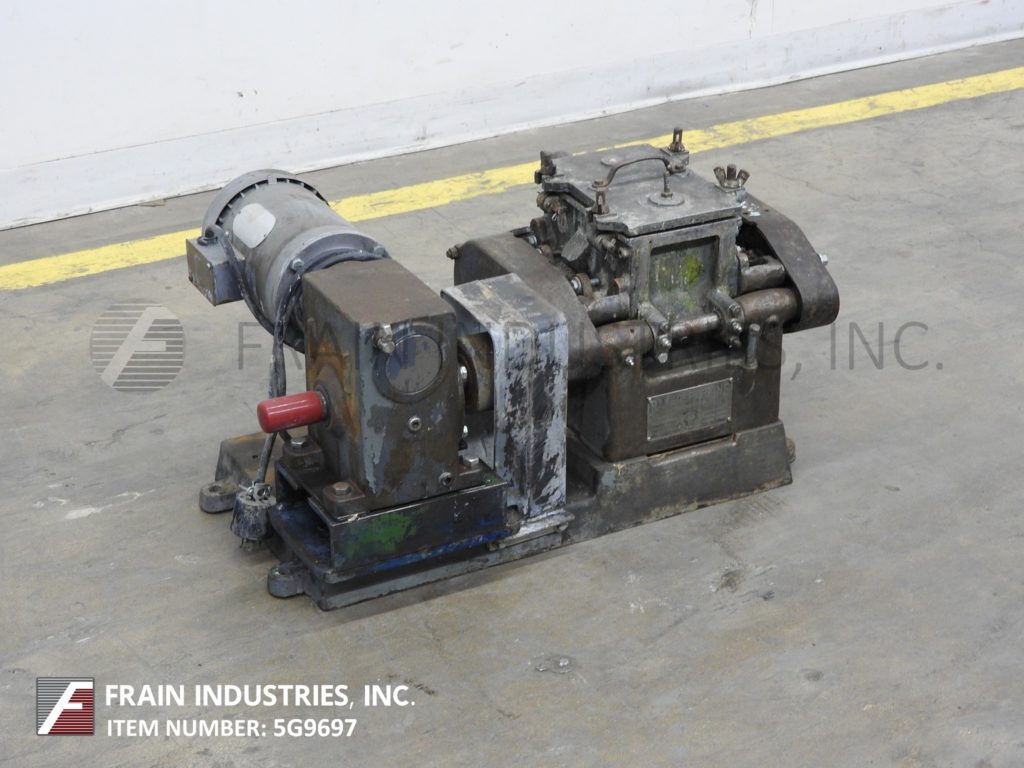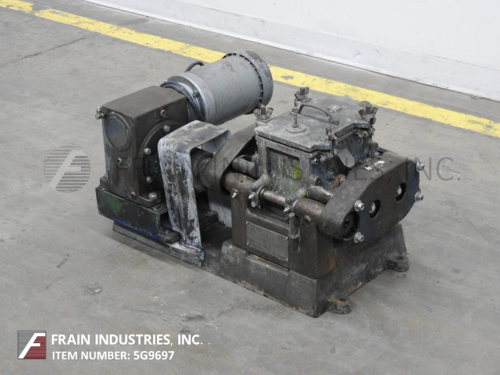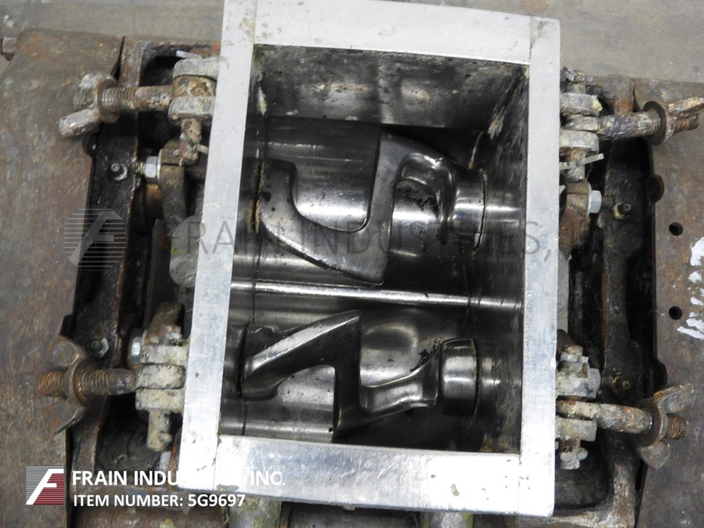 贝克珀金斯模型0.1立方英尺(3 / 4加仑)的工作能力,304不锈钢,双臂,西格玛叶片搅拌机每小时的产品磅数-取决于材料和应用。内部混合室尺寸:5½“长度;7¼”宽;在深度7”。配备不锈钢接触部件,螺栓下盖,1½马力电机驱动,手动倾斜15"填充高度和6"放电高度。安装在一个油漆钢基础框架。