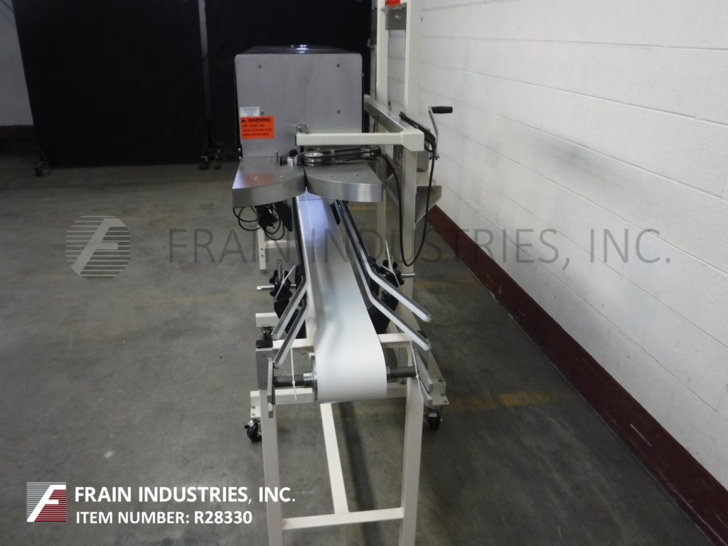 Bandrite 6000型号,从右到左,自动,连续运动中,管线,带式,封袋机从每分钟0至750英寸的袋数额定 - 取决于材料,应用和操作员灵巧。配有成角度的密封倾斜倾斜头具有¾“宽热封和冷却杆,具有非标载体带,可调节的运行速度和温度控制高达600°袋式装饰站,1个线编码器和手动曲柄高度可调节不同尺寸袋子。加热和冷却,温度控制器和速度控制表盘。安装超过6英寸宽的x 96“长不锈钢带式输送机,可调节导轨和由¼惠普驱动器供电。