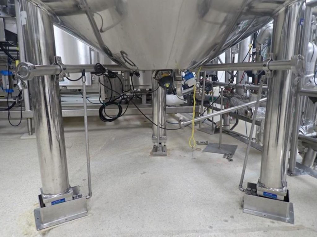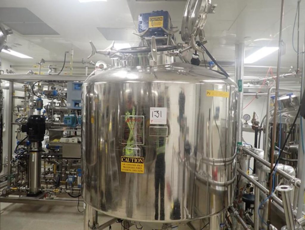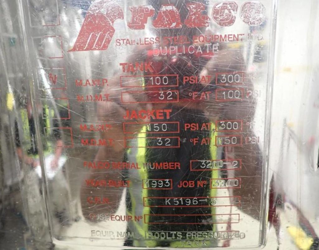 法尔科不锈钢设备有限公司,350加仑,不锈钢夹套工艺反应器罐。316L外观与# 7完成和316L电子抛光完成。容器尺寸:55”外径x 66”深,36”直壁和26”斜底。配有圆顶顶,16英寸外径手动通道,翻转向上,螺栓向下盖,顶部安装5马力电机驱动刮面和支柱搅拌器,全侧和底部3区护套。斜底部,3"外径冲洗底部中心底部排出阀,16"接地间隙。安装在不锈钢(3)腿架上。