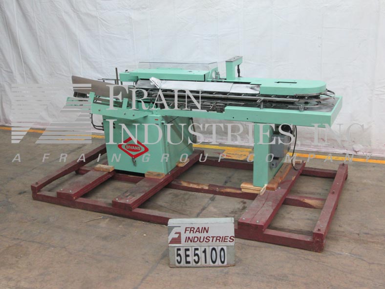 Bivans, 74T型,半自动,连续运动,立式折边纸箱机。纸箱尺寸范围:(7/8)"至5"长度;3 / 4 "至3½"宽度;深度2¼“至10”。配备24"长杂志,真空采摘和地方,6"中心,44"长的负载区域每边,3"宽x 36"长的卸料皮带输送机和Lexan保护。控制面板带有按钮启动/停止/慢跑/复位,运行/慢跑开关,真空开/关开关和变速控制拨盘。安装在重型基础框架与脚轮和水平垫。