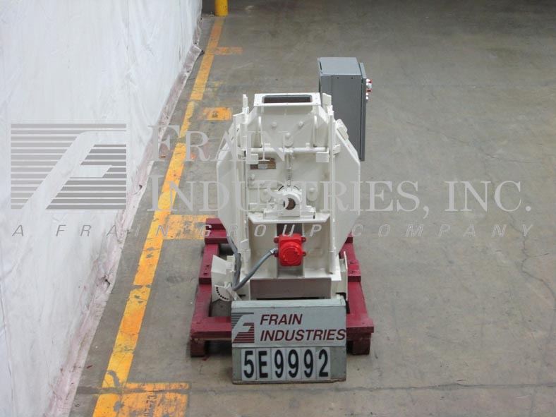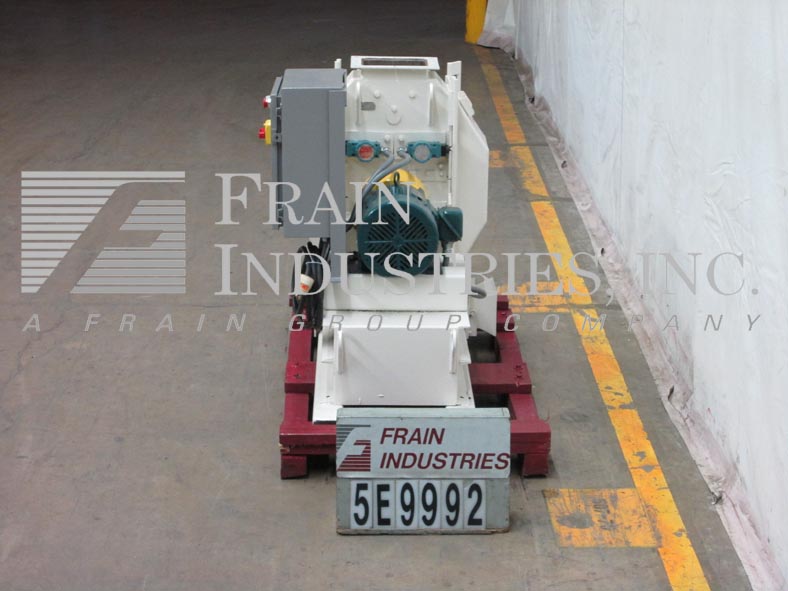 幸福Model E1906, Heavy duty, mild steel, dual screen, hammer mill, with 576 square inch screen area and up to 1740 rpm production rates – depending on materials and application. Equipped with a 13" x 9-1/2" OD, 9" x 6" ID top flanged product in feed with (8) 3/8" bolt holes on 5-1/2" centers, octagonal housing, 9" OD recessed reversible rotor with (8) 6" Long x 2" Wide knife / blunt swing blades. Side access doors with one piece, spring loaded, quick change screen carriage, drive shaft locking device, adjustable non leak air sweep, saftey and vibration sensor switches, 10" x 7-1/2" OD, 7" x 4-1/2" ID side bottom flanged discharge port with (6) 3/8" bolt holes on 4" centers, and 9" x 7" OD air relief port, 10 hp drive, and a start/stop control package. Mounted on heavy duty base frame.
