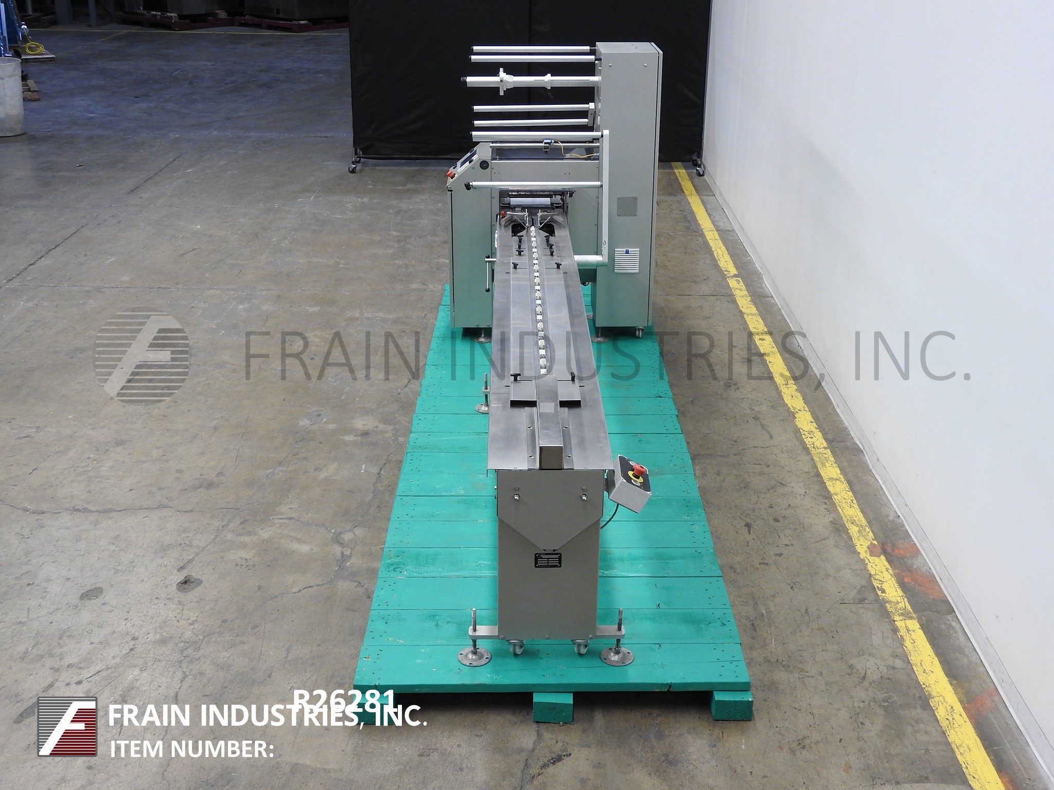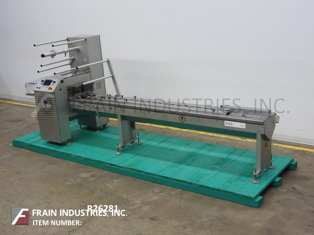 Doboy Model 201,水平,2-UP,连续运动包装,每分钟50到150包 - 取决于材料,应用和机器配置。产品尺寸范围:1-1 / 2“至22.2”的长度;宽度为1/2“至9.8”;高度为3.5英寸,具有适当的变化零件。配备12英寸的长途产品,可调节宽度导轨,水平热封钳口和鳍密封轮,胶片注册,24英寸长的排放槽,带有安全保护。网页规格:直径最长26英寸;直径最长16英寸;3“芯直径。双胶片带拼接表,便于薄膜滚动变化。控制面板具有液晶显示器操作员界面的触摸板控制。安装在高度可调腿,带脚轮和调平腿。