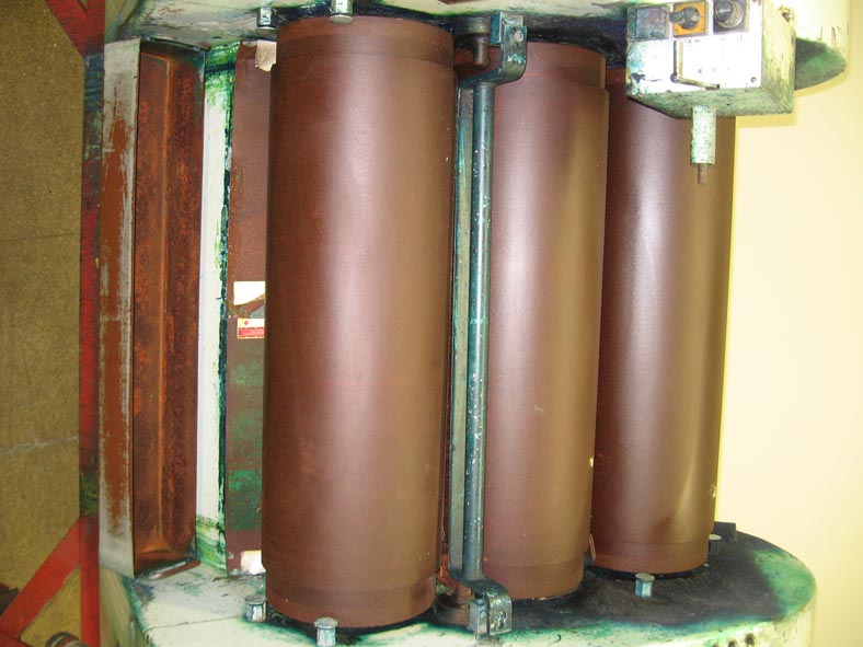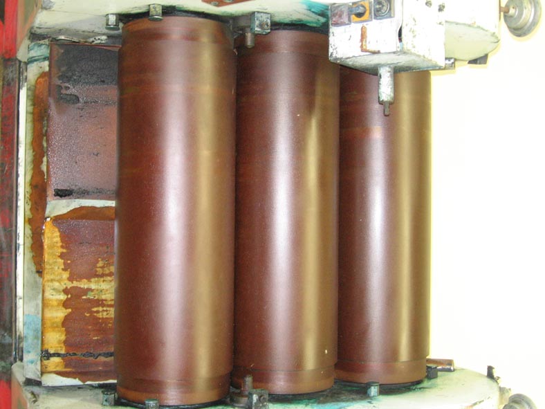 3辊分散研磨机具有(3)8“直径X 24”长辊。单位配有围裙,端板和液压辊组系统。分散轧机容量为700磅/小时(基于沉重的浆料使用平均分散膜厚度为0.0005“)。主要用于研磨化妆品,印刷油墨,漆,巧克力,塑料,软膏和涂料。用硬化钢制成的水冷辊。最后用来在化妆品操作中运行。