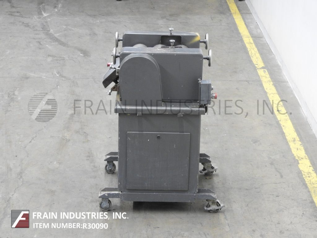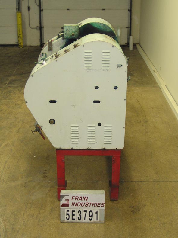 布勒-麦格,型号6 x 11¾,3辊轧机,每小时产品量-取决于材料和应用。配备(3)直径6英寸× 11¾英寸长的辊子,由3马力电机驱动,配有手动曲柄间隙调整,刮板刀片和11¾英寸长的工作辊子区域。所有(3)辊由淬硬钢制成。辊冷却与2“外径/¾”ID三钳进口端口冷却介质和¾“NPT出口。控制面板有按钮启动,停止和e-停止。安装在重型基础框架与脚轮。