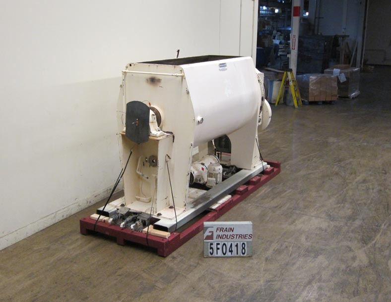 Buhler-Maig,55英尺,25件,碳钢,水平桨,批量混合器,最大容量为3,300磅。每小时磅产品 - 取决于物品和应用。腔尺寸:78“长x 40”宽x 44“深。配备76”长x 24“宽顶部中心入口,14英寸长x 14”宽椭圆形拨片在6英寸直径轴上,10“长x 10”宽度底部滑动栅极放电,28“落地间隙。