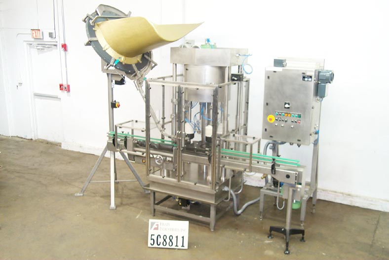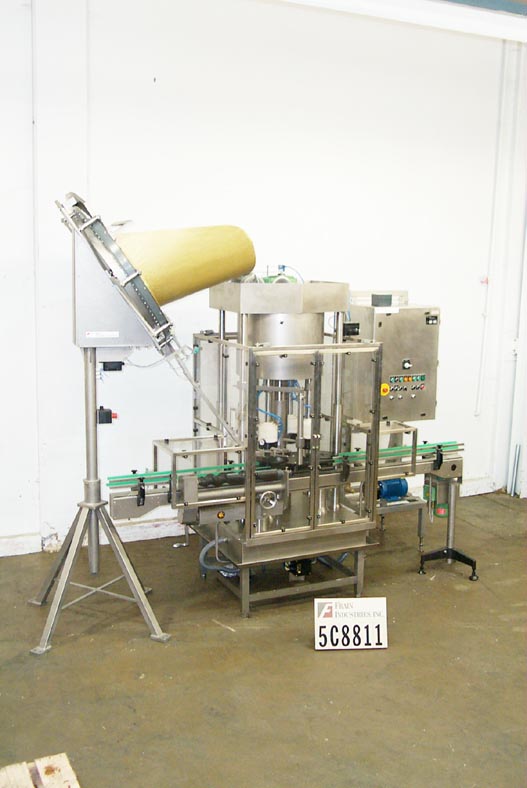 四头旋转真空卡盘封盖能力的速度从40到100 CPM -速度取决于材料和应用。盖子尺寸范围从11mm到85MM(更大的直径可以在严格的条件下处理。容器范围:(直径)至130MM(高度)35 - 300MM。所有的s/s建筑都有屏障防护。有蜗杆到星轮的集装箱装卸。销风格分类器。