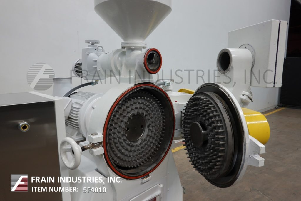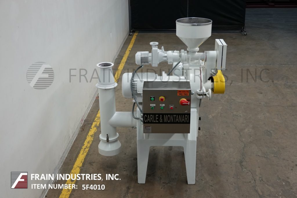 Carle Montanari,型号MAP 400S,紧凑,针磨可可粉磨成酒,生产速度每小时400公斤或880磅每小时-取决于材料和应用。配备17“径向流盘的直径,交错定位销和独立15惠普马达驱动器旋转相反的方向和自我清洁自己旋转,自动打开,大胆的舱口盖,16“直径x 15“长锥产品料斗1惠普马达驱动,3”OD饲料螺钉、底液阀集合。安装在(4)腿基础框架上。