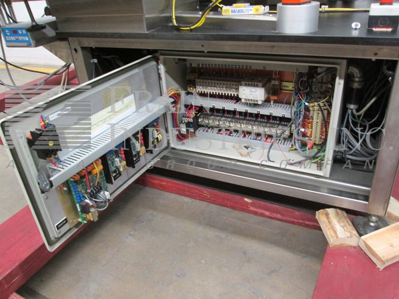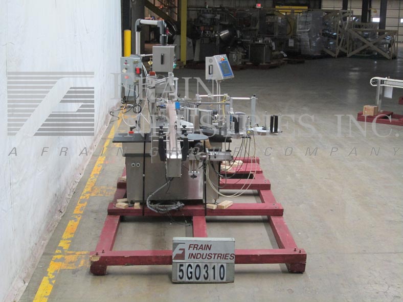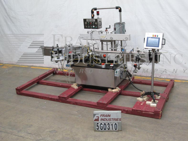 Charles Lapierre Model Uni 510,自动,内联,不锈钢,压敏,贴上贴标器的包裹,每分钟25到200个标签 - 取决于材料和应用。标签尺寸:长达9英寸;宽度高达5.5。配备132“长x 5”宽Delrin皮带产品输送机,配有2“高导轨,凸轮,20”长距离传送带,6“高削皮板,没有容器/无标签传感器,55英寸长顶按压输送机,手工曲柄可调节高度可达15英寸,而空气爆破用收藏箱拒绝。另外,快速更改Seco仪表,标签计数器和摆臂按钮控制面板。安装在带有高度可调腿的不锈钢框架上。标签卷:直径高达15英寸; 3“OD核心。