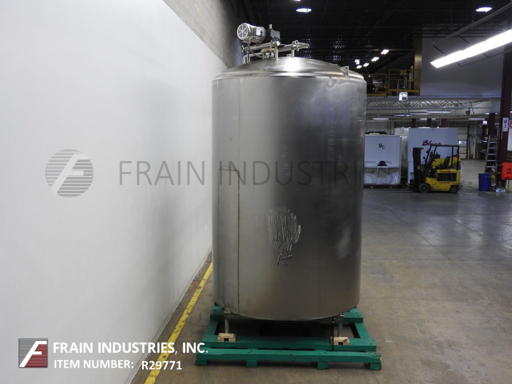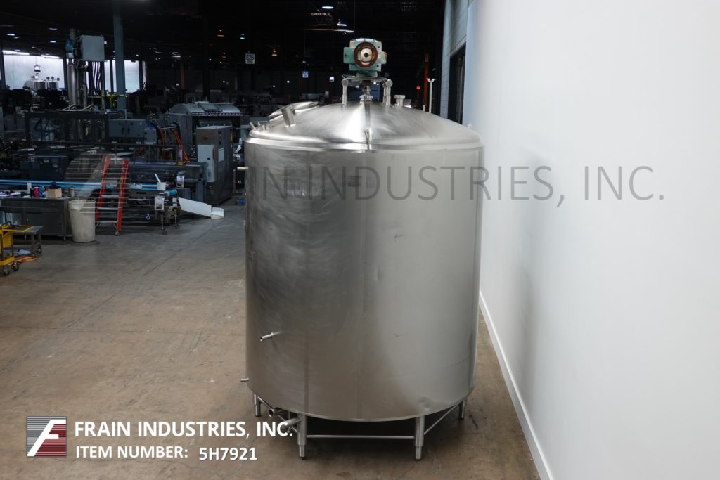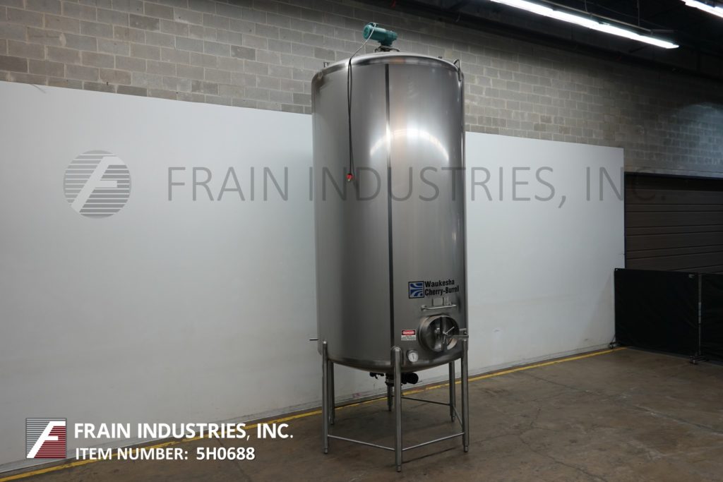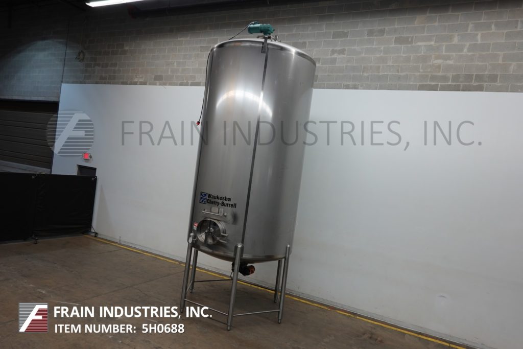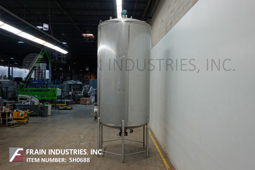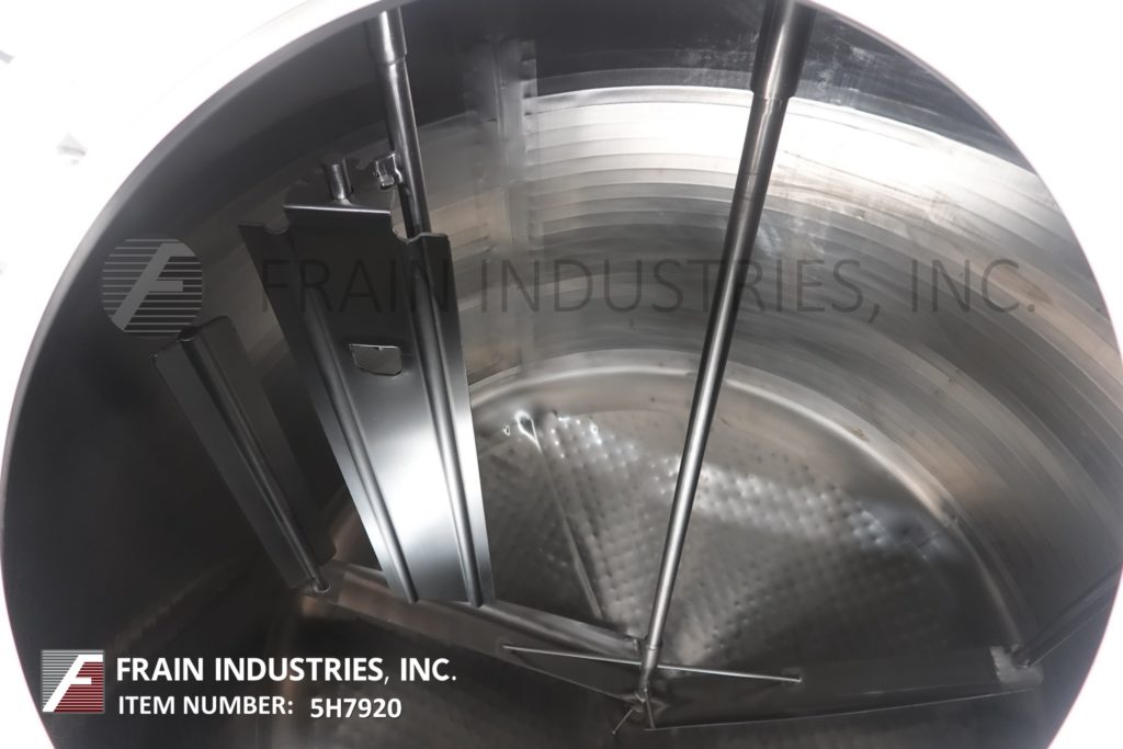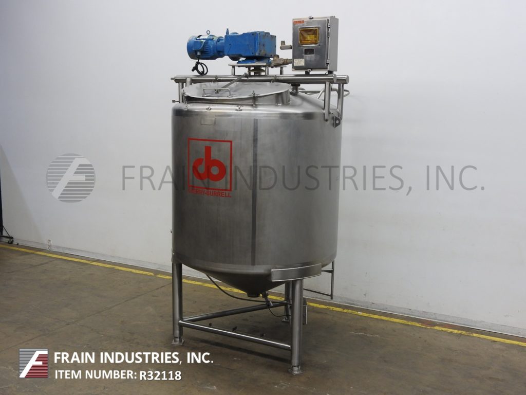 Cherry Burrell 1000加仑,316不锈钢,单壁加工槽。容器尺寸:72"内径x 60"直壁。配备一个7½Hp顶部桥式扫描搅拌器,48" x 20"人路,10"宽x 50"长可调节挡板,(1)热电眼和(1)冲洗安装传感器。锥底具有5¾”外径/ 4¾”ID三夹板中心卸料,地面间隙为22”。安装在(3)腿架上,带有侧梯。