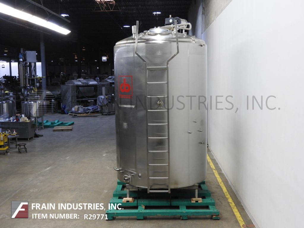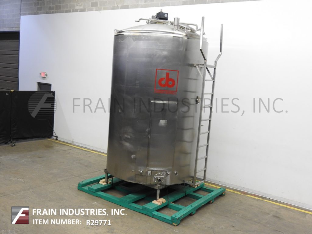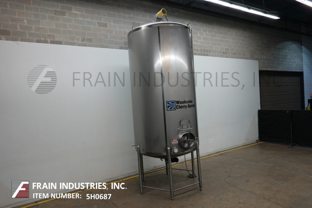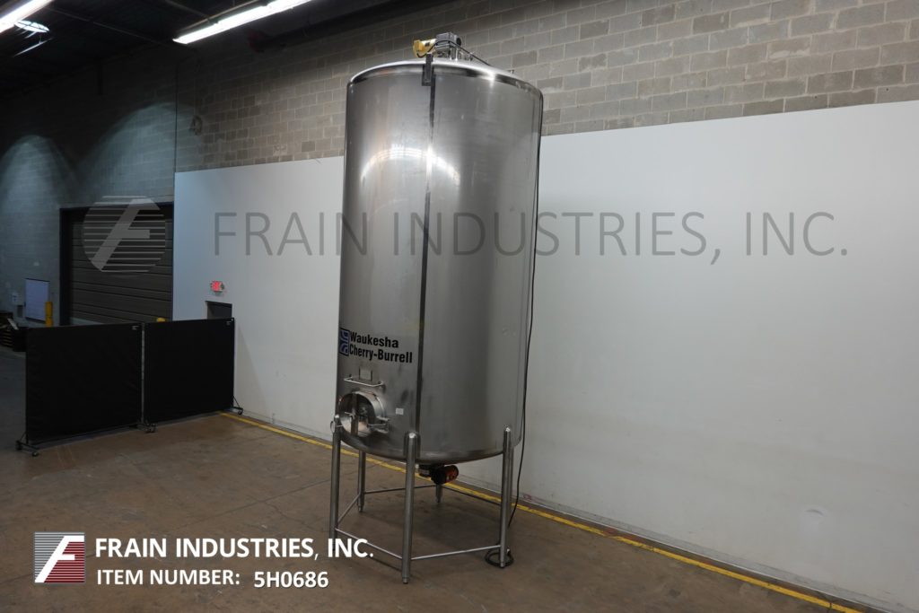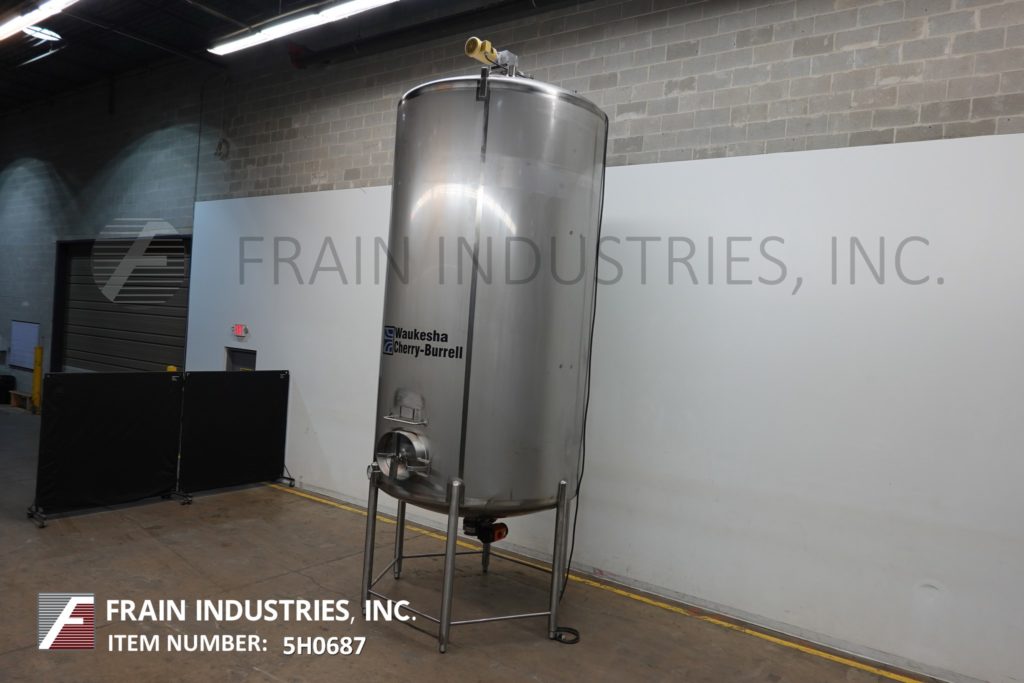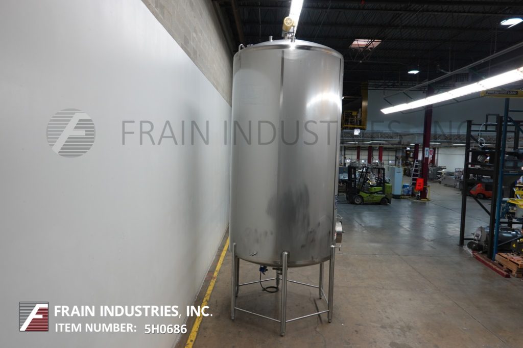 Cherry Burrell 1000加仑,316不锈钢,单壁加工槽。容器尺寸:72"内径x 60"直壁。配备一个7½Hp顶部桥式扫描搅拌器,48" x 20"人路,10"宽x 50"长可调节挡板,(1)热电眼和(1)冲洗安装传感器。锥底具有5¾”外径/ 4¾”ID三夹板中心卸料,地面间隙为22”。安装在(3)腿架上,带有侧梯。