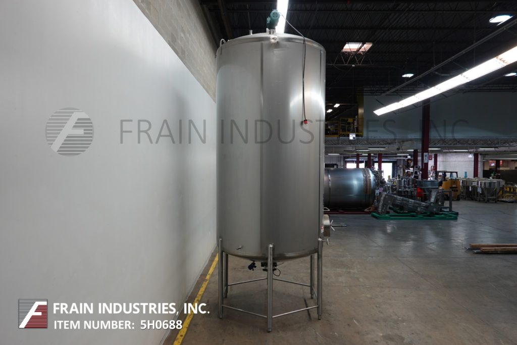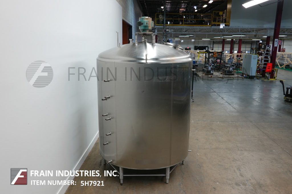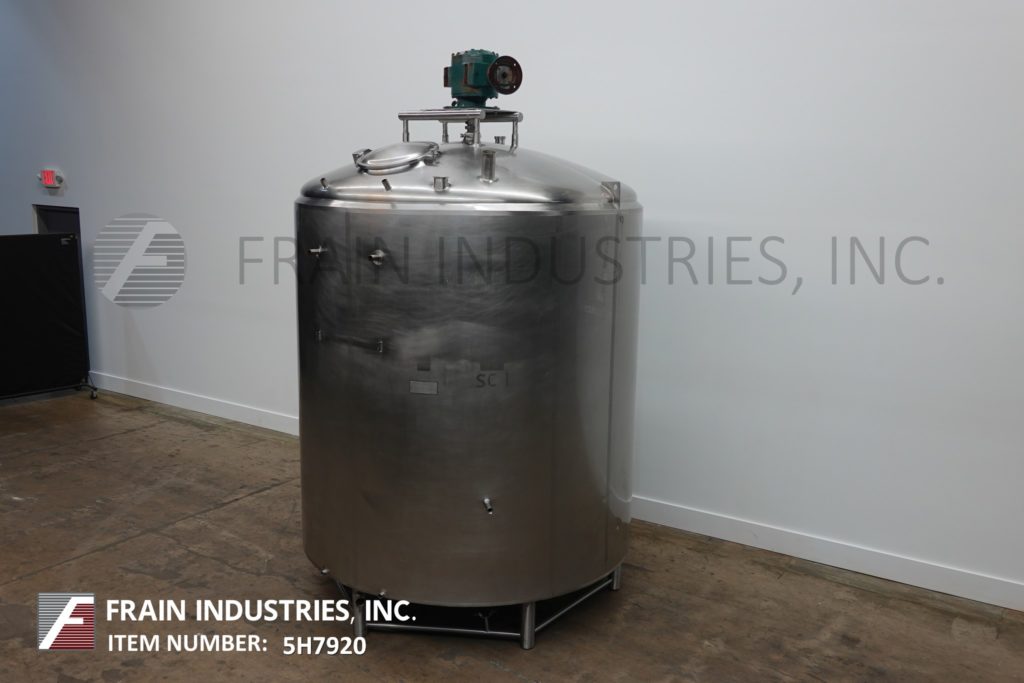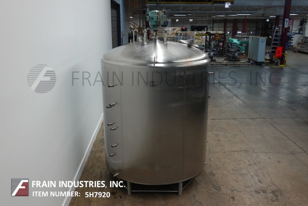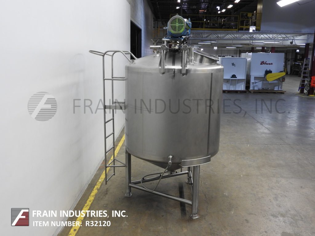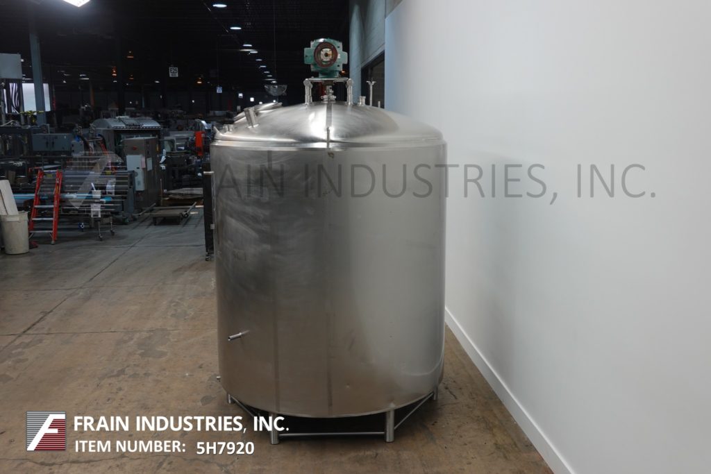 樱桃卷发1000加仑,304不锈钢,绝缘加工罐。容器尺寸:72"内径x 60"直壁。配备了两种速度5 /2½HP顶桥安装扫描搅拌器,20英寸直径通道,(2)热电偶套管和(1)冲洗式安装传感器。锥形底部有4½“OD / 4”ID Tri-Clamp中心放电,20“地面清关。安装在(4)腿框架上。