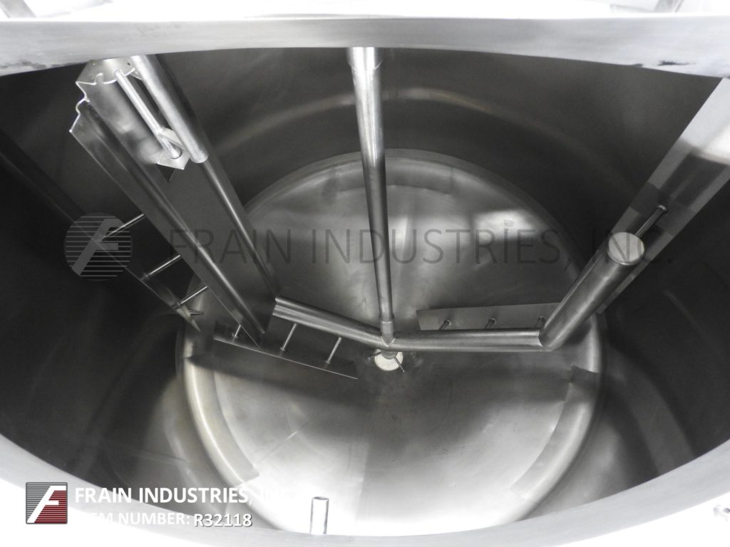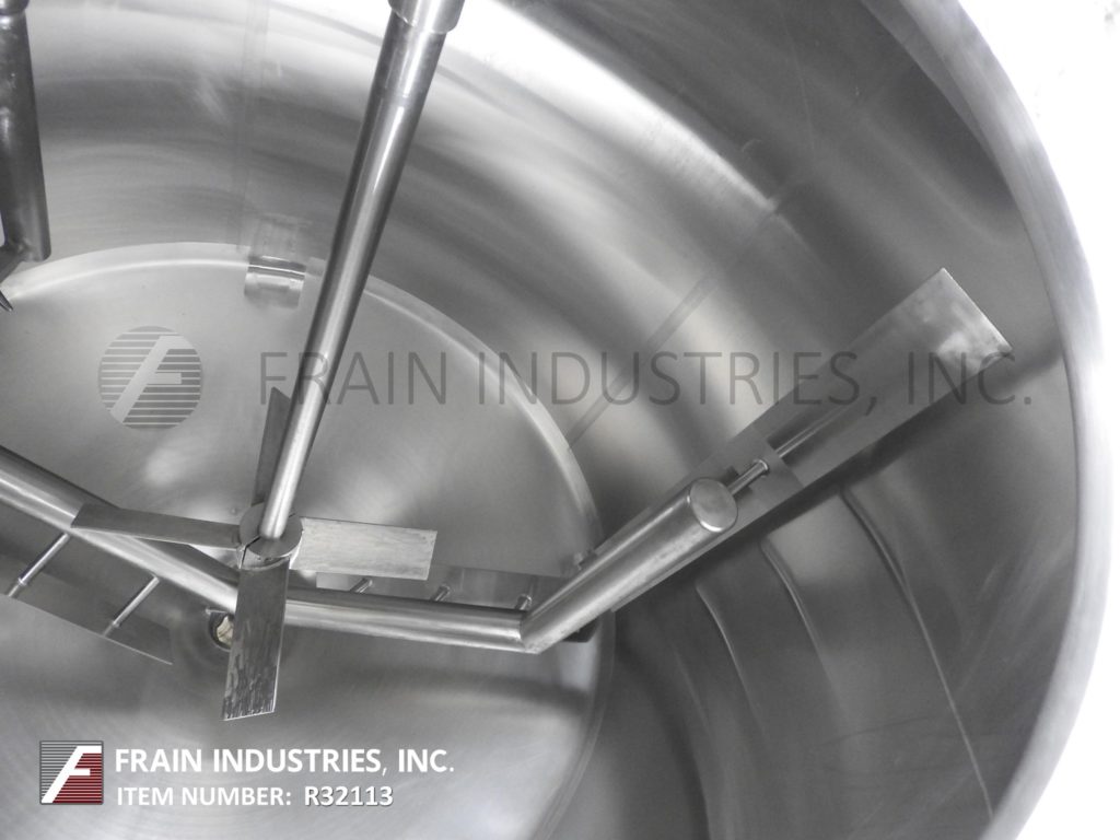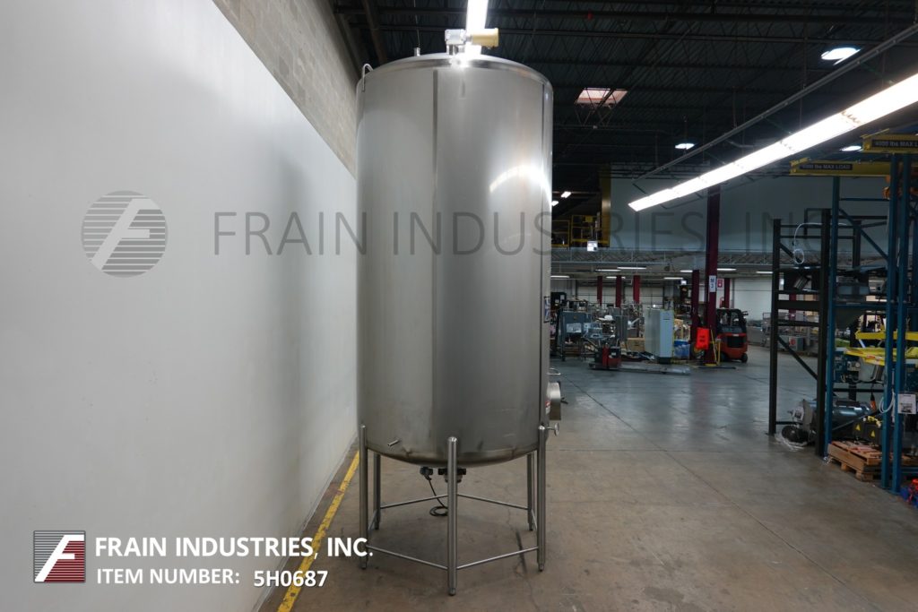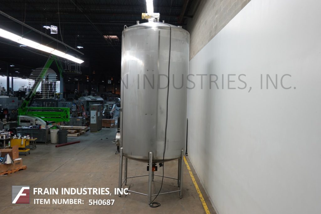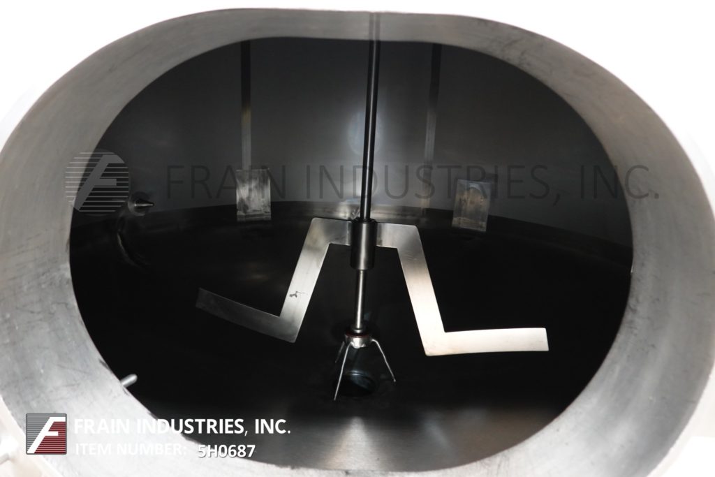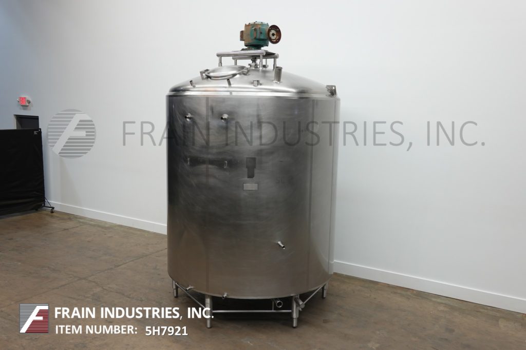 樱桃卷发1000加仑,304不锈钢,绝缘加工罐。容器尺寸:72"内径x 60"直壁。配备了两种速度5 /2½HP顶桥安装扫描搅拌器,20英寸直径通道,(2)热电偶套管和(1)冲洗式安装传感器。锥形底部有4½“OD / 4”ID Tri-Clamp中心放电,20“地面清关。安装在(4)腿框架上。