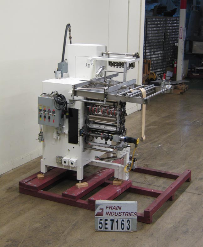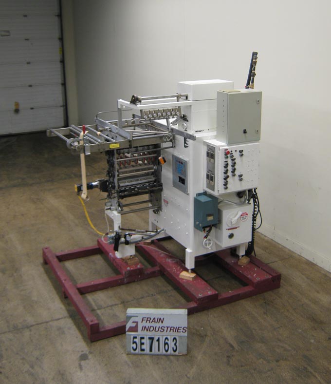 多车道垂直f/f/s,最高可达60次/分钟,袋数视应用而定。袋的大小范围:1 1/4“- 16”W x 2 1/8”——无限L,把轮子,三瓣水平交叉,和淬火密封乔木,密封材料,切断刀,刀,和Ormec PLC,请5000一块牛肉控制器Xycom模型4105运营商接口监控与触摸板控制。(4)左右侧和十字密封控制器状态,单膜卷,膜配准,撕裂切口。机器设计允许广泛的包装尺寸,以一套单一的工具,圆的多车道,连续运动设计提供高生产力的产量与可控的填充率。
