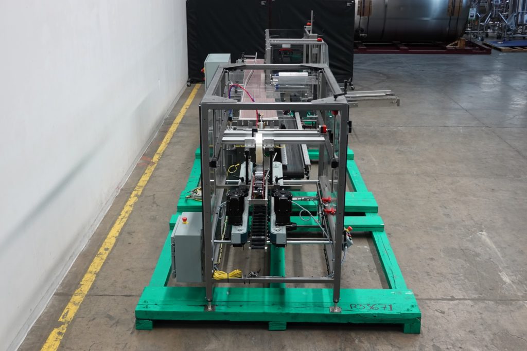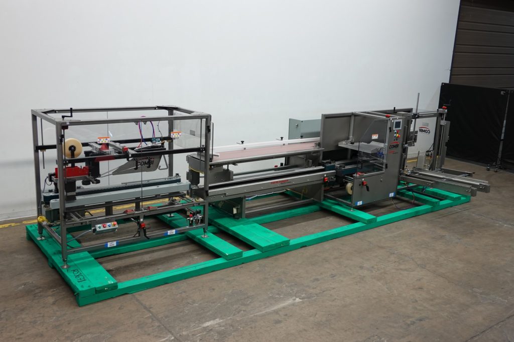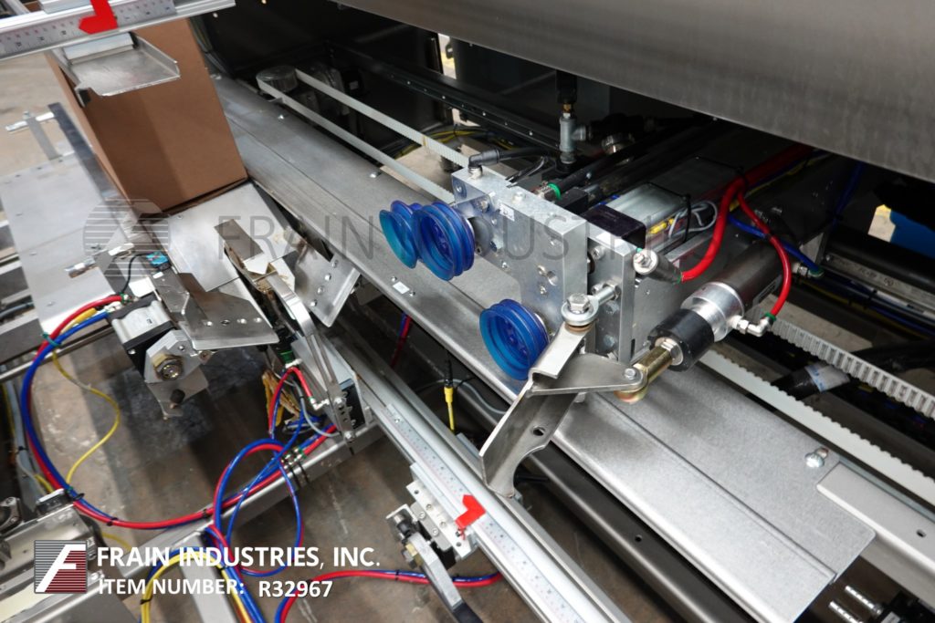 Combi America,2EZHS型,Ergopack。额定值为每分钟5至20箱–取决于材料、应用和操作员的灵巧度。外壳尺寸范围:8英寸至24英寸长;宽度为6英寸至16英寸;高度为5英寸至18英寸。配备48“长空白盒库、吸盘往复拾取和放置、次要和主要翻板闭合器、机械推杆、2”胶带头、6“宽x 192”长产品输送机,带80”长双向堆积和包装站,与12“宽x 94”长盒输送机平行运行。顶部箱锥配备有小型翻板闭合器、大型翻板犁、3“宽双面夹持带、2”顶部/底部胶带头、可通过Siko量规和联锁Lexan安全防护装置进行调节的手动曲柄。
