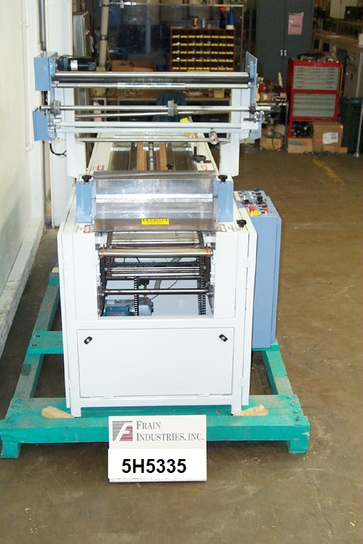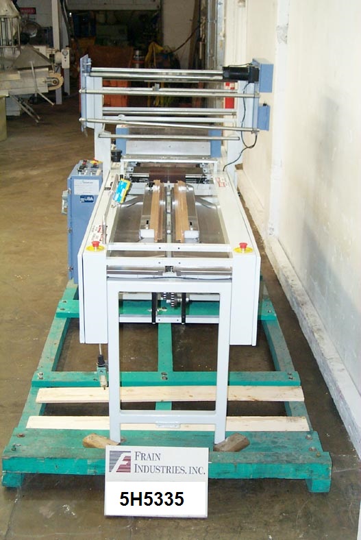 CW160型,自动,机械,连续运动,收缩包装和卷封机,额定每分钟100英尺,产品数量取决于材料和应用。包装尺寸范围:3"至36"的长度x 2"至15"的宽度x 1/8"至5"的高度。配备72"长链进料设置在16"中心,16"宽密封钳口和底部静态搭接密封,加热旋转刀切断,销轮操作,真空传递带,动力薄膜展开和真空泵。最大薄膜宽度34"和最大辊直径13"。控制面板有启动,停止和e-stop按钮的颚式加热器控制。安装在重型框架上。