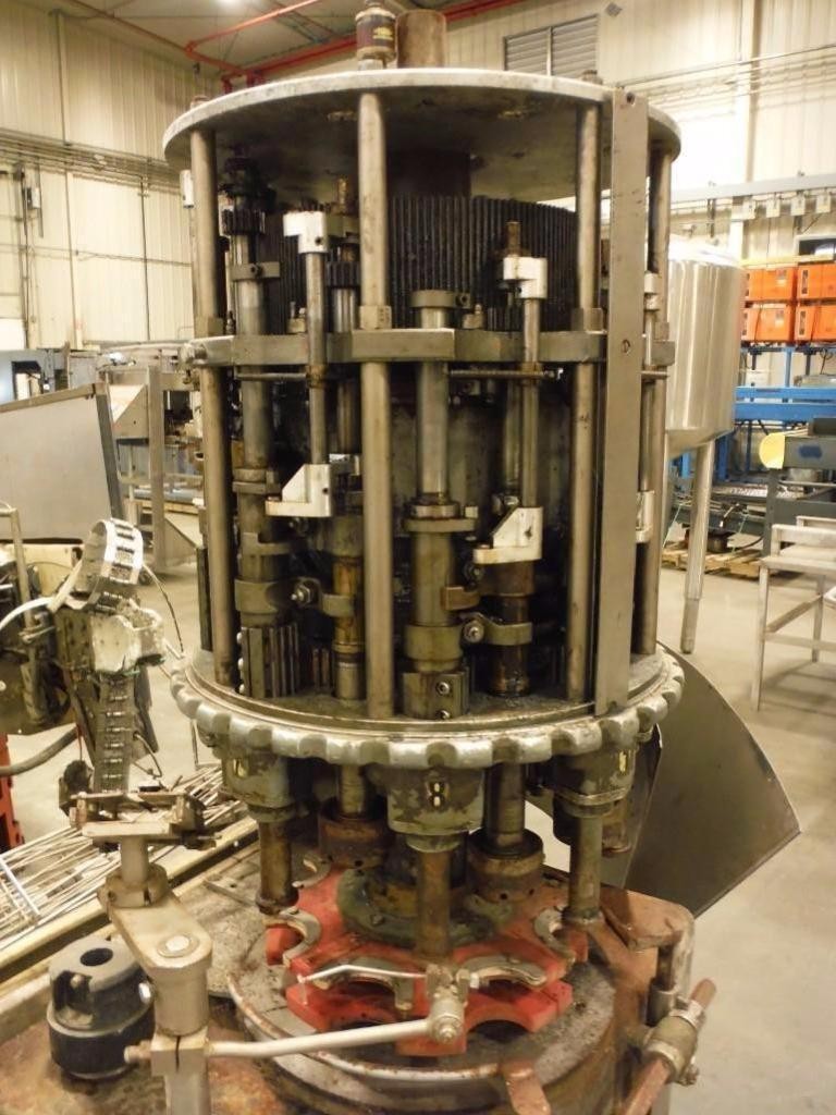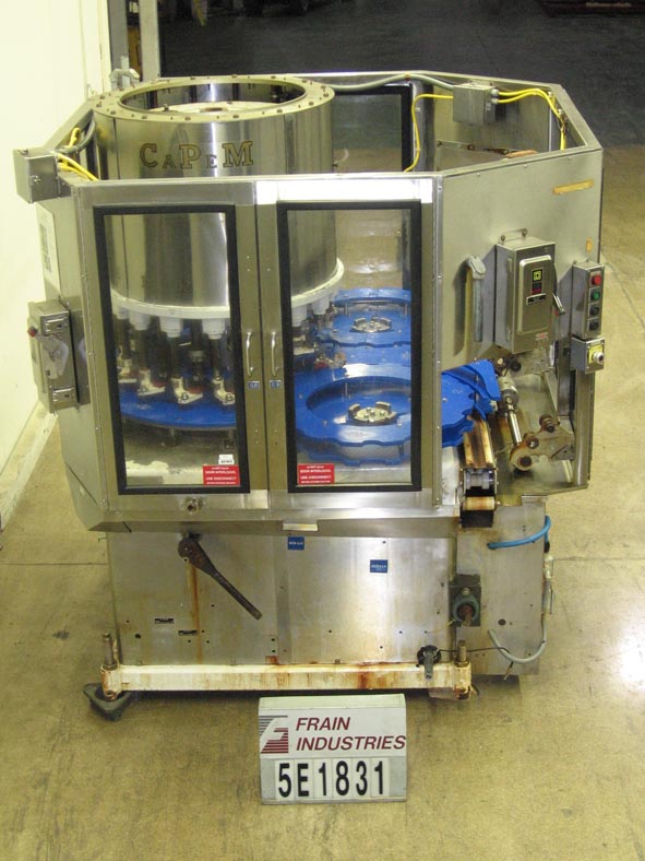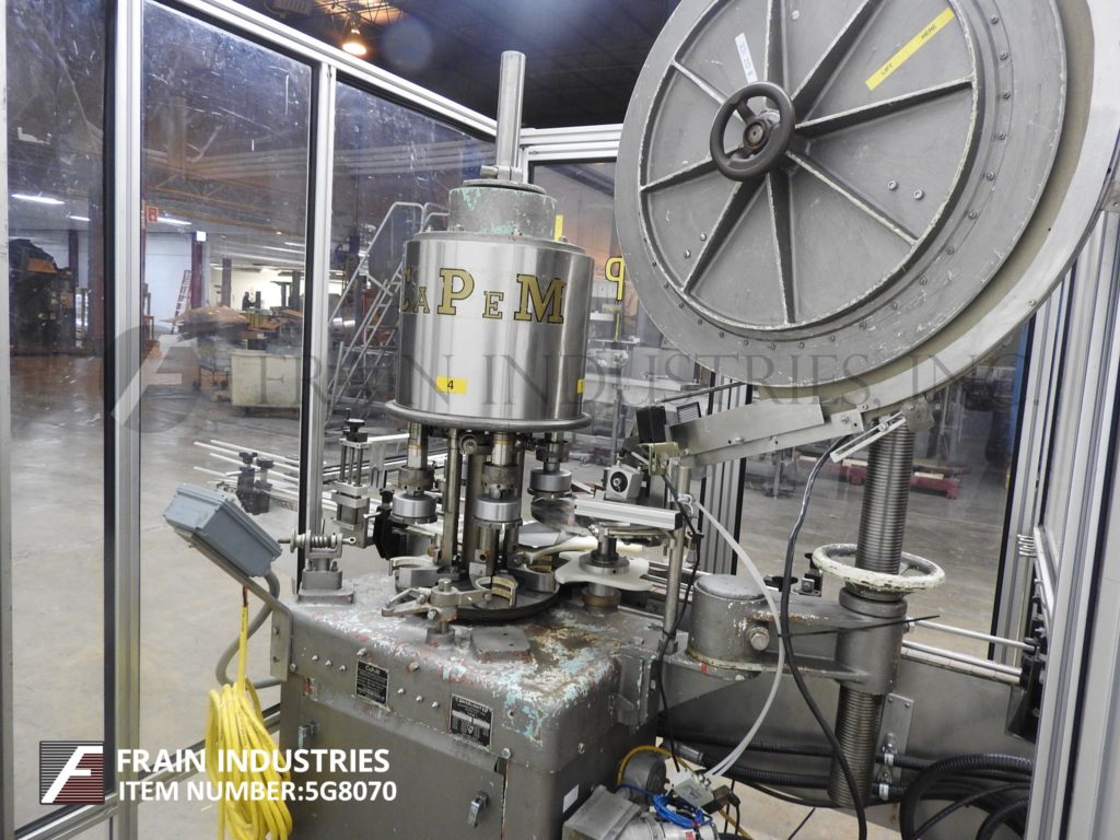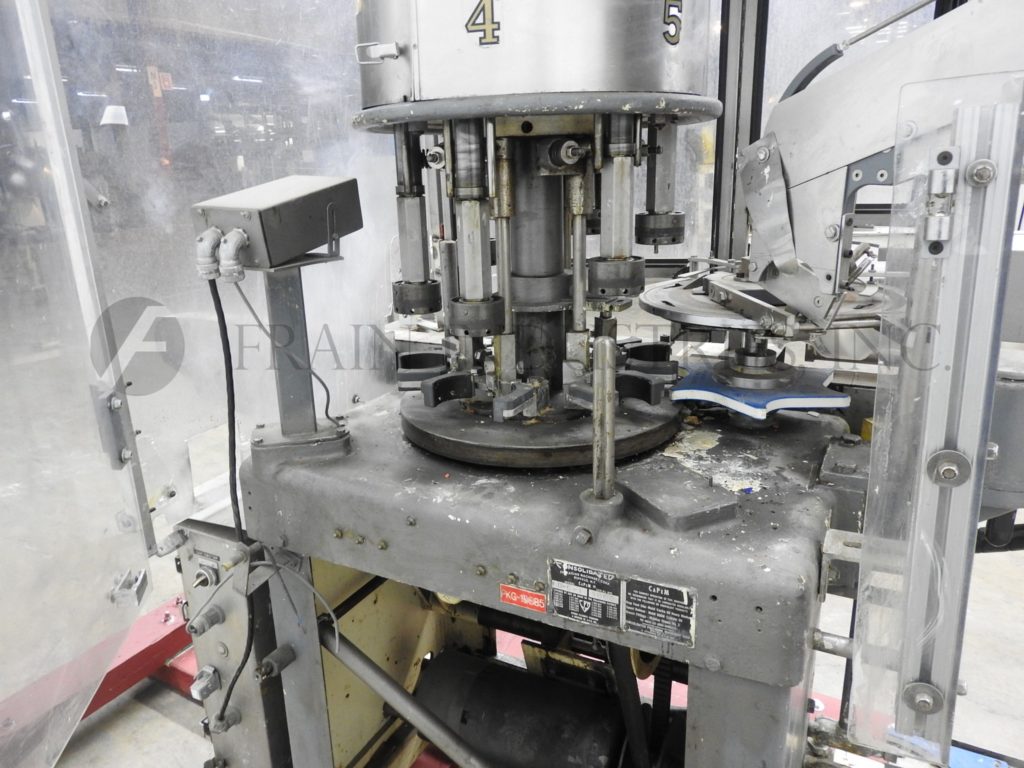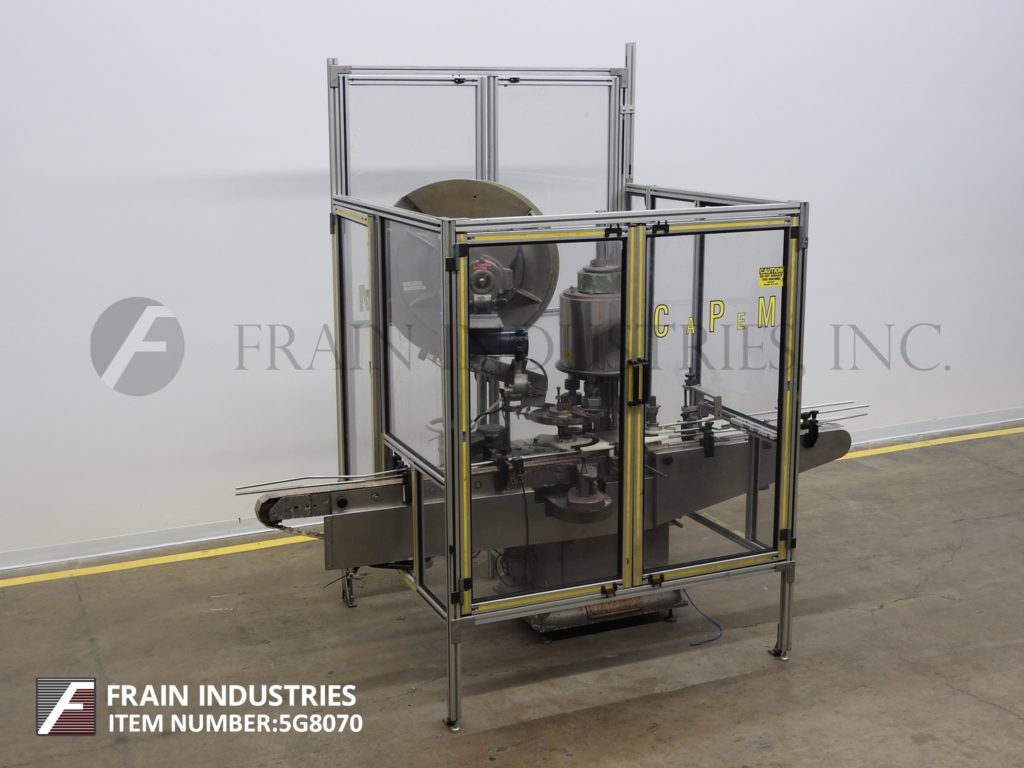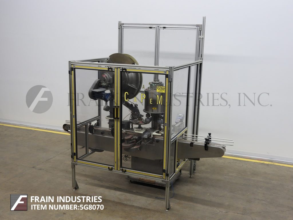 自动弹簧钳,每分钟能够20至200个容器。配备3-1 / 4“输送机,盖帽,针轮分拣机,空气辅助盖滑槽和星轮集装箱处理组件。