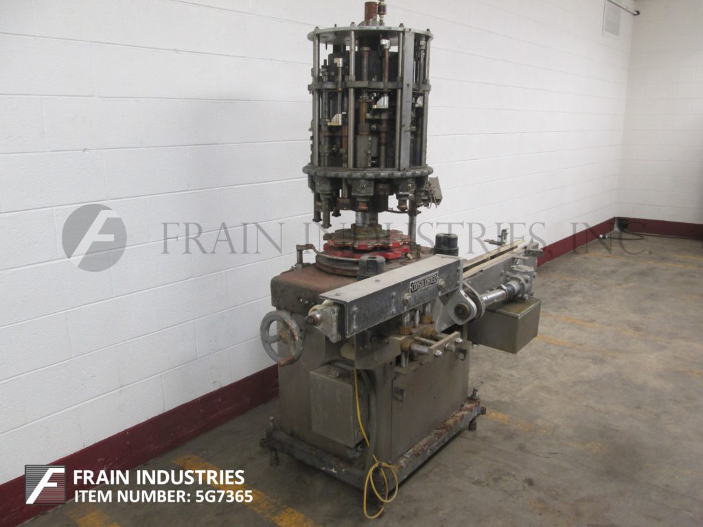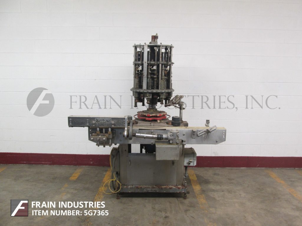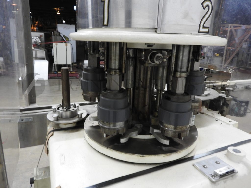 自动,8头,带5-1 / 2“间距的旋转夹,能够从90到240个容器的每分钟速度 - 速度取决于材料和应用。帽尺寸范围:高达89mm(需要适当的变换部件)。配备108英寸长3英寸宽带输送机,饲料中的星轮,瓶夹手指,跨握把,15“直径转动轮到容器和星形轮排出。安装在高度可调节的腿上。
