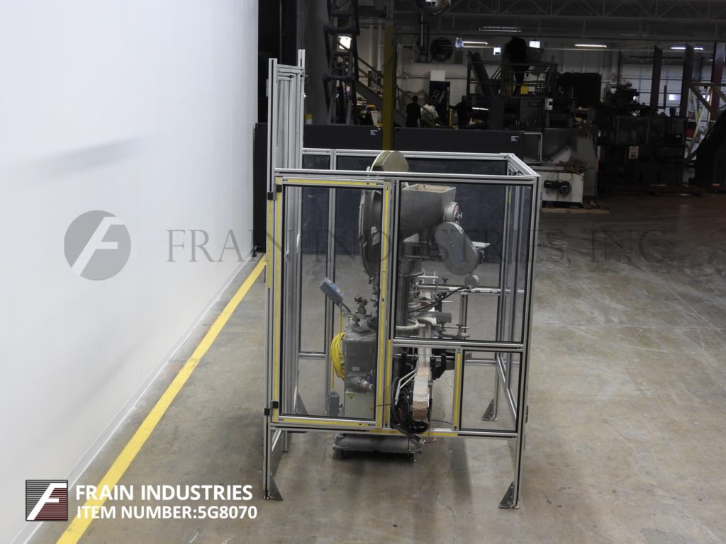 综合模型D6-F,自动,6个头旋转卡盘夹,每分钟24到180个容器 - 取决于材料和应用。帽尺寸:高达100毫米。容器尺寸:直径最多5英寸,具有适当的变化零件。配备150“长x 3英”宽容集装箱输送机,带24英寸长虫螺丝到星轮集装箱索引,帽料斗,盘帽分拣机,饲料槽,帽镐OFF,没有容器/无帽,16“OD旋转炮塔,带有安全保护,双集装箱夹具和(6)扭矩打开夹头设置在8英寸中心。控制器已启动,停止,e-stop按钮,带电梯和盖子自动,关闭,手动控制开关,计数器和Statis灯条安装在重型基础框架上。