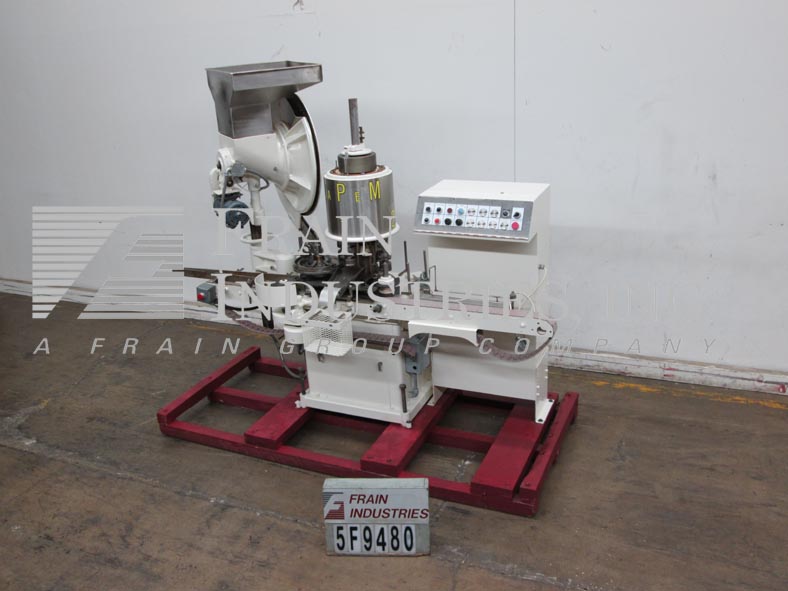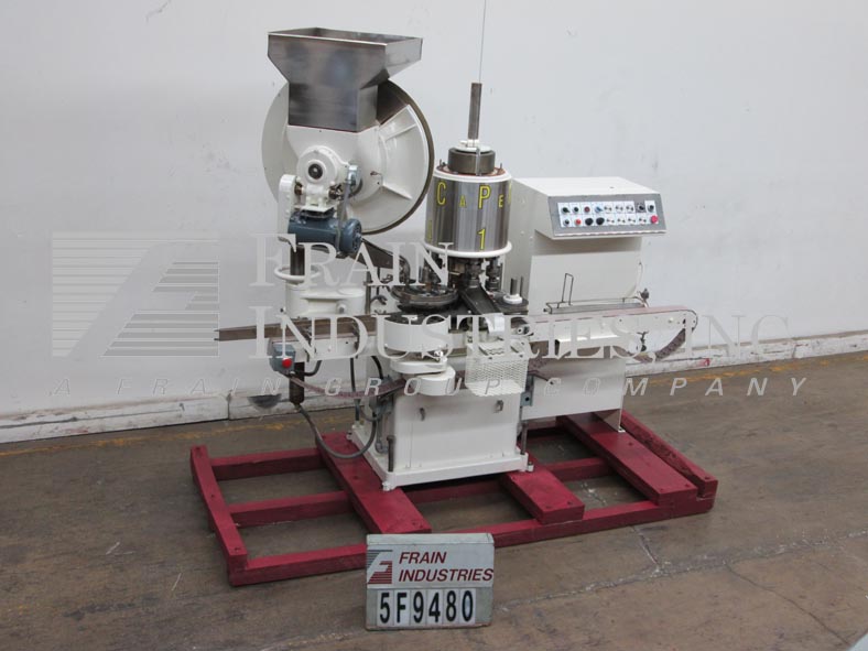 固结型CF4,自动,4头旋转,卡盘压盖机,带盖分选机和给料机,额定每分钟40到120个容器-取决于材料和应用。最大瓶盖尺寸:70mm,最大集装箱高度:9"。配备了一体化的盖给料器和料斗,配有圆盘理盖槽和按钮,85"长x 2-1/2"宽皮带输送机,在进料器和出料器上有星形轮,无容器/无盖和(4)扭矩开启卡盘盖头设置在9"中心,双抓斗集装箱装卸。控制面板有CPU控制器,有盖分选机,盖机和转塔速度控制,分选机和机器手动,开/关,自动开关。