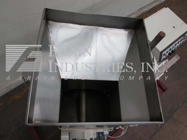 固结型TG-4-15,自动,4头旋转,卡盘盖帽分选机/给料机额定从30至150个集装箱每分钟-取决于材料和应用。容器尺寸范围:直径可达6-1/2";身高2到8英寸。配备了一体化的盖给料机,20 × 20 × 17盖料斗,盘理料机/给料机,盖溜槽,按钮和头部。108"长x 3-1/4"宽皮带输送机与蜗杆螺杆星形轮在进给和出料,没有容器/没有盖子和扭矩打开卡盘,设置在12"中心。控制面板上有盖分选机和盖机速度控制盘,转塔进给,星轮进给,螺杆堵塞和盖槽低指示灯。